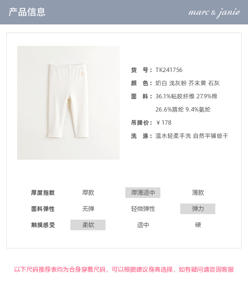 【科技发热】马克珍妮女童甜美花边打底裤2024年秋冬新款241756