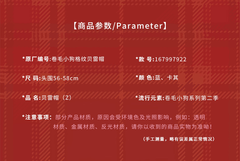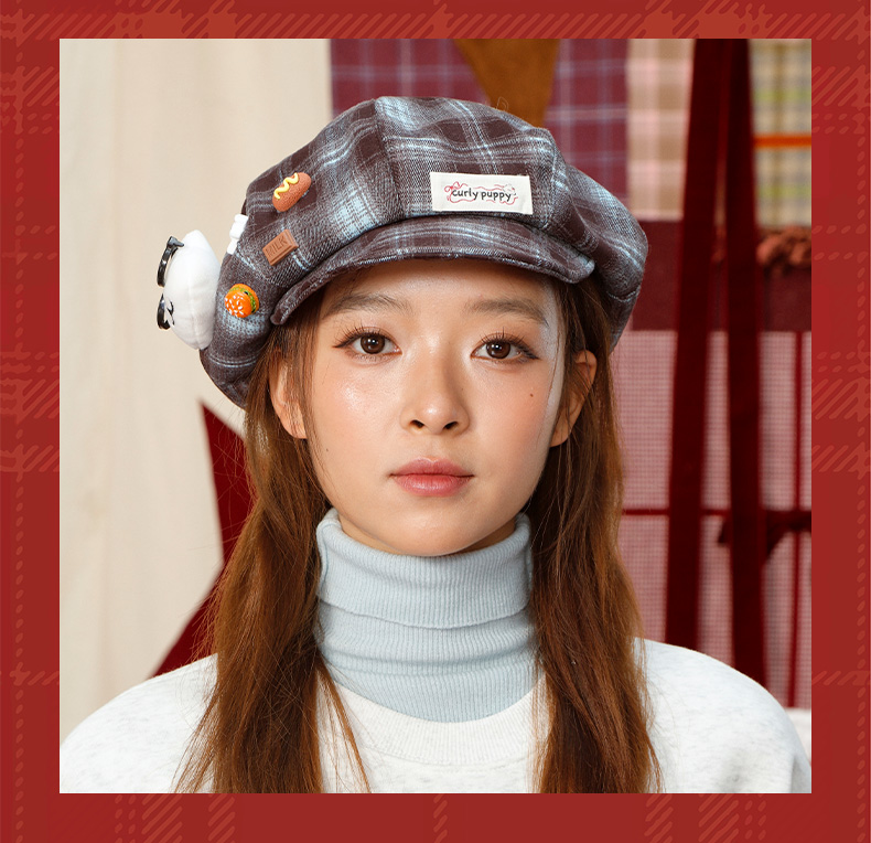 卷毛小狗格纹时尚潮流贝雷帽-纪念日百货门店同款167997922