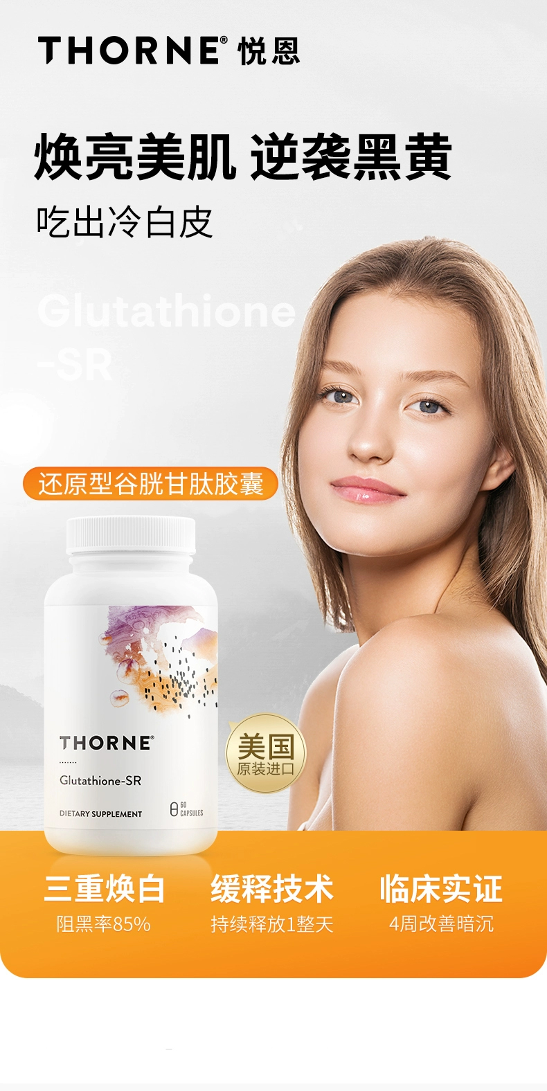 Thorne悦恩进口谷胱甘肽胶囊 支持肝脏健康 60粒 SA540