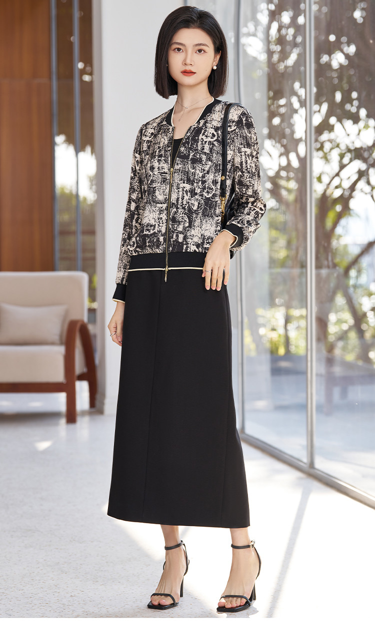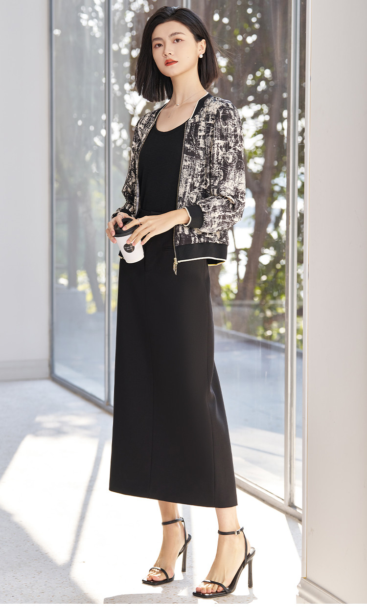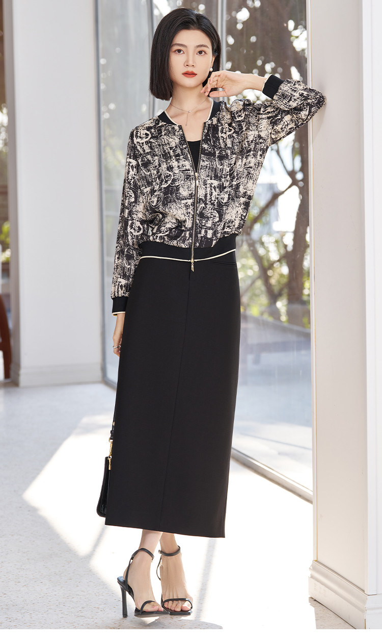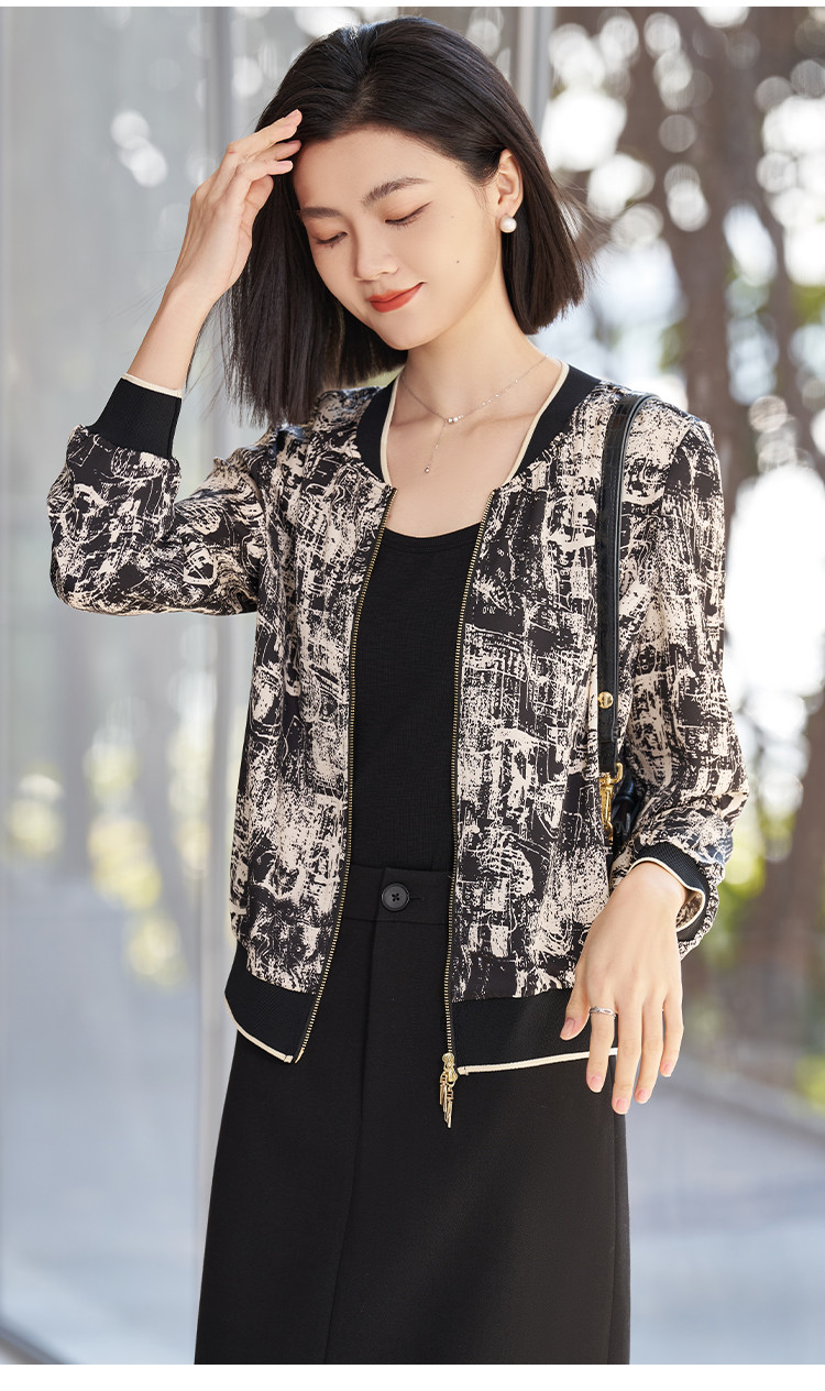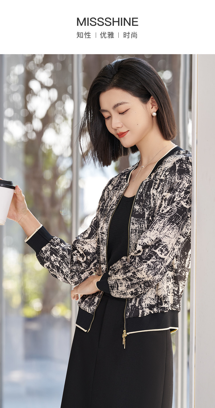 剩S/M/L 米思阳2026春季新款设计感印花短外套双拉链立领休闲通勤上衣5476