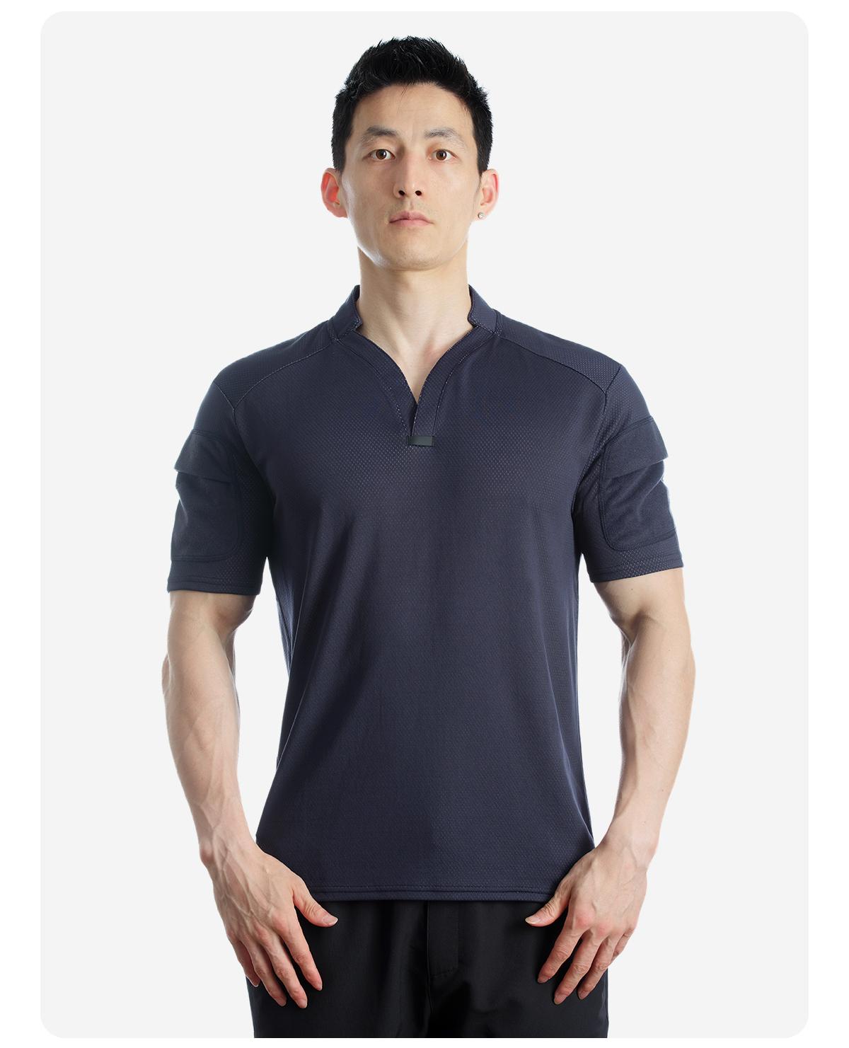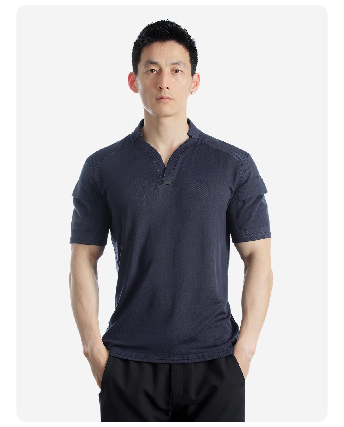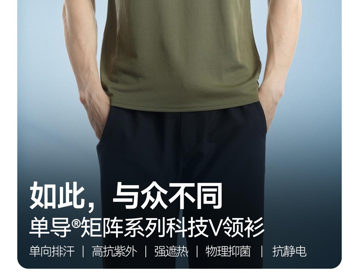 单导亨利小V领polo衫男士休闲夏季透气速干修身健身吸汗排汗半袖