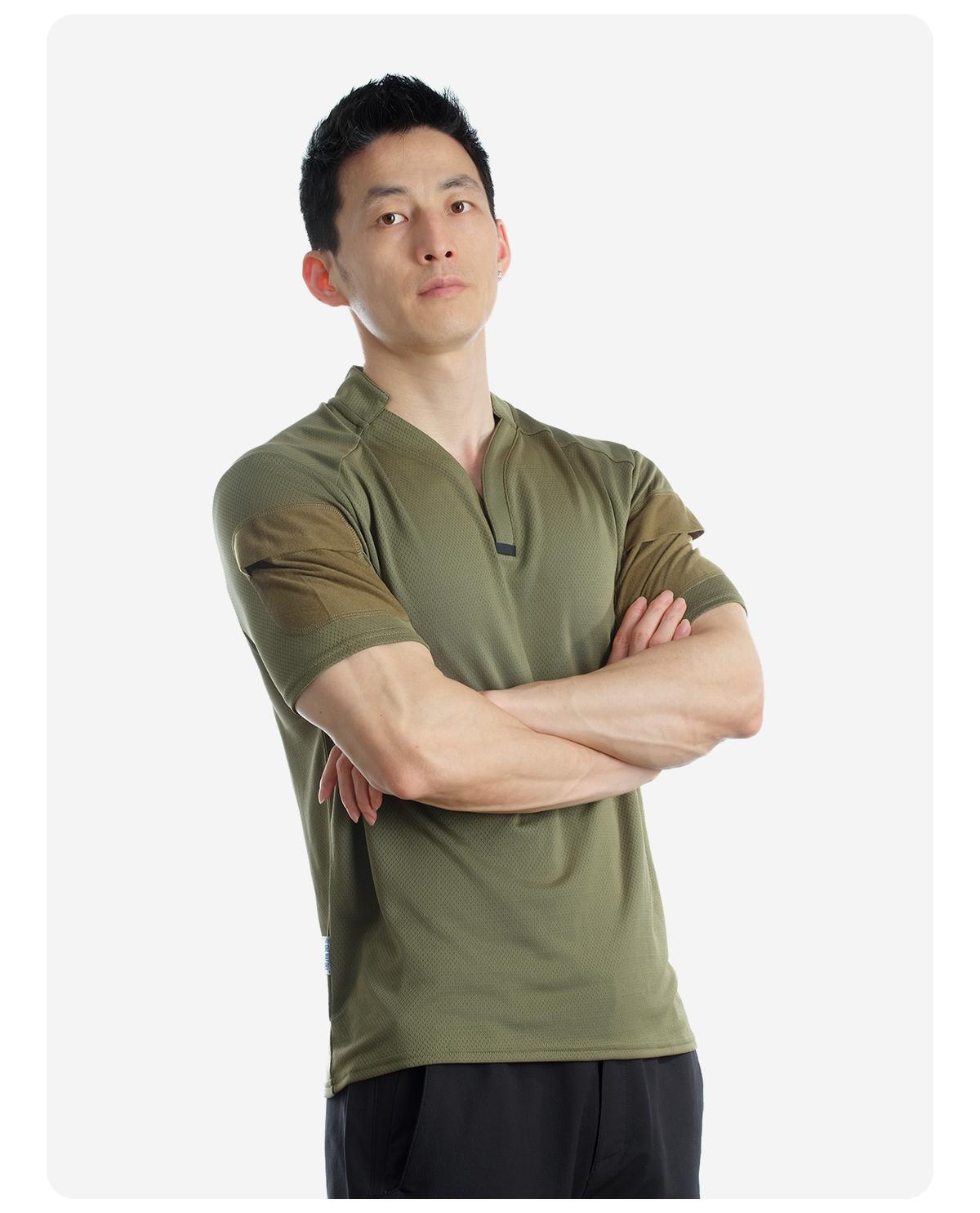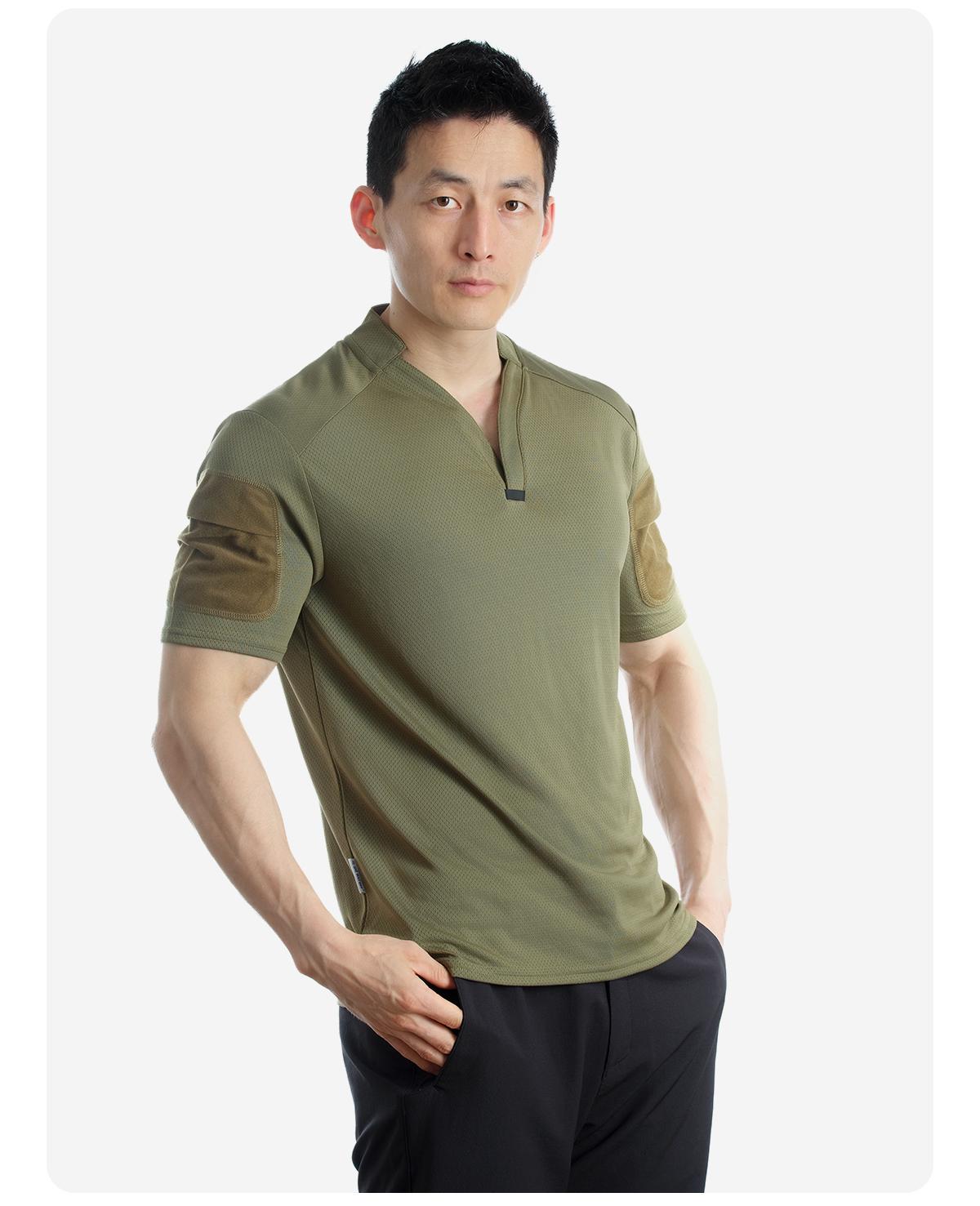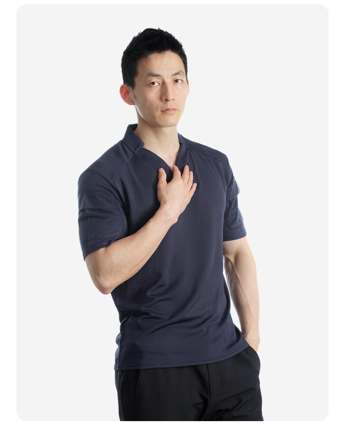 单导亨利小V领polo衫男士休闲夏季透气速干修身健身吸汗排汗半袖