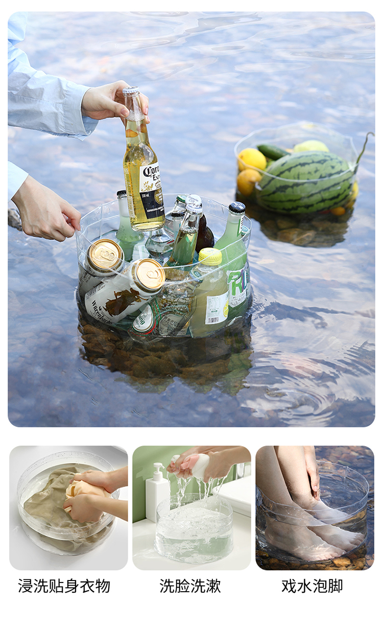 FaSoLa可折叠水桶户外旅行便携式大容量储水桶水盆透明洗衣盆大号