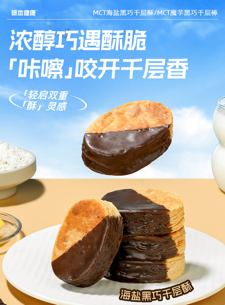 【退酮过渡】【生酮不可】【冷链产品不支持无理由退货】哥本™MCT海盐黑巧千层酥 110g/盒 哥本健康™MCT魔芋黑巧千层棒 45g/袋