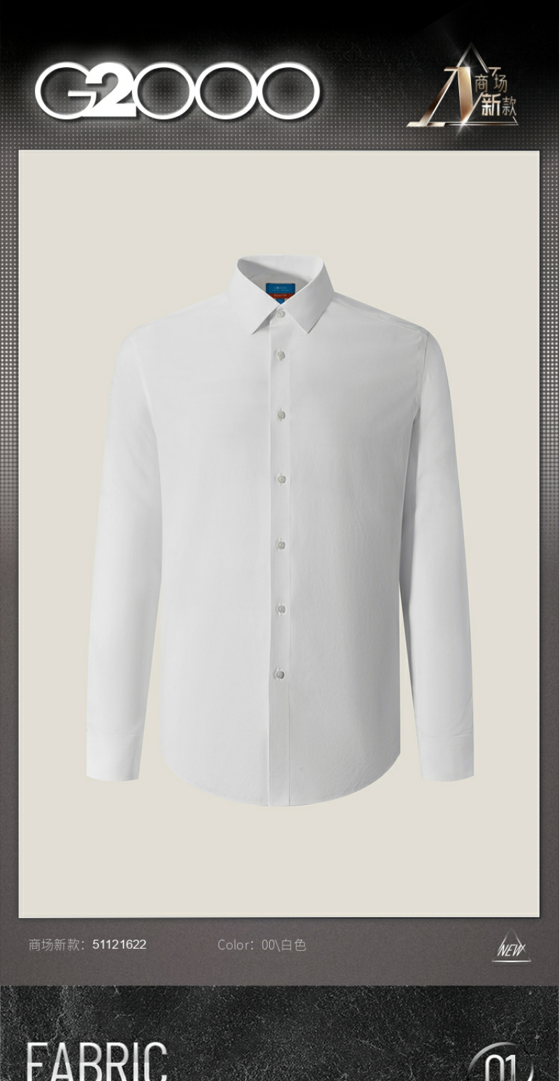 G2000男装SS25商场新款【免烫防皱/棉质桑蚕丝】通勤薄长袖衬衫51121622
