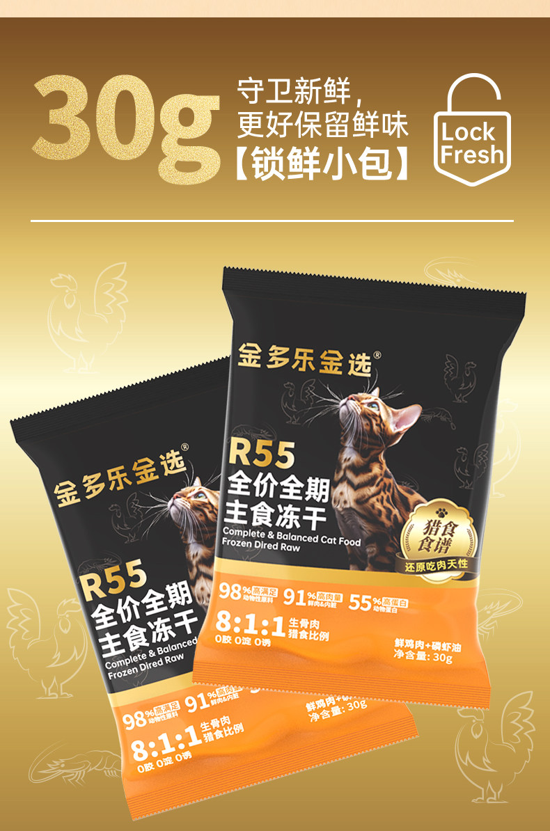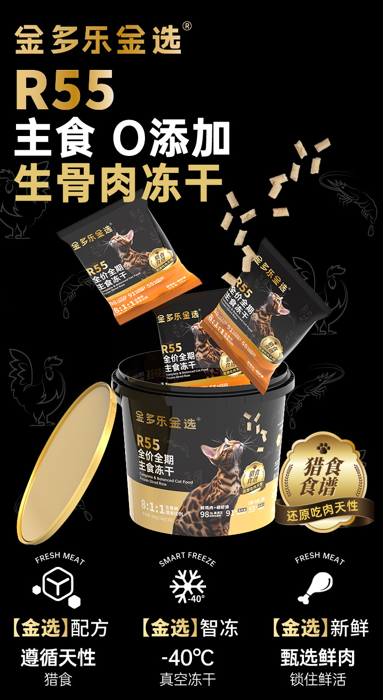 【金多乐金选】R55主食冻干480g锁鲜小包生骨肉成幼猫营养增肥发腮