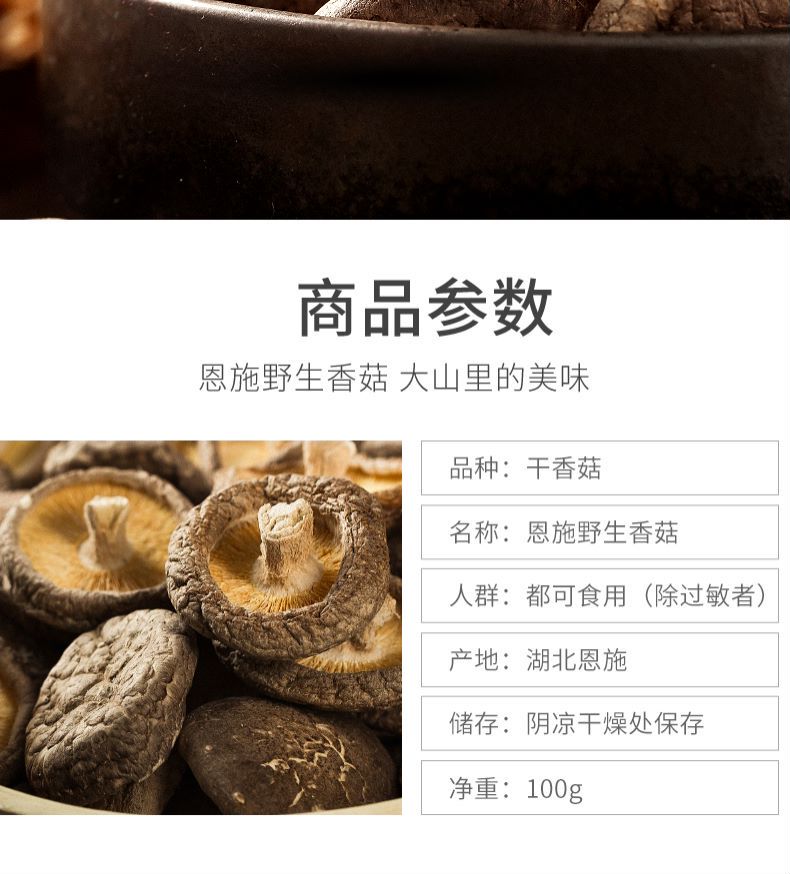【严选】【金新农】【野生香菇 干度适中 炖汤炒菜美味干货】恩施耘丰鑫品干香菇100g/袋 (厂家直发)