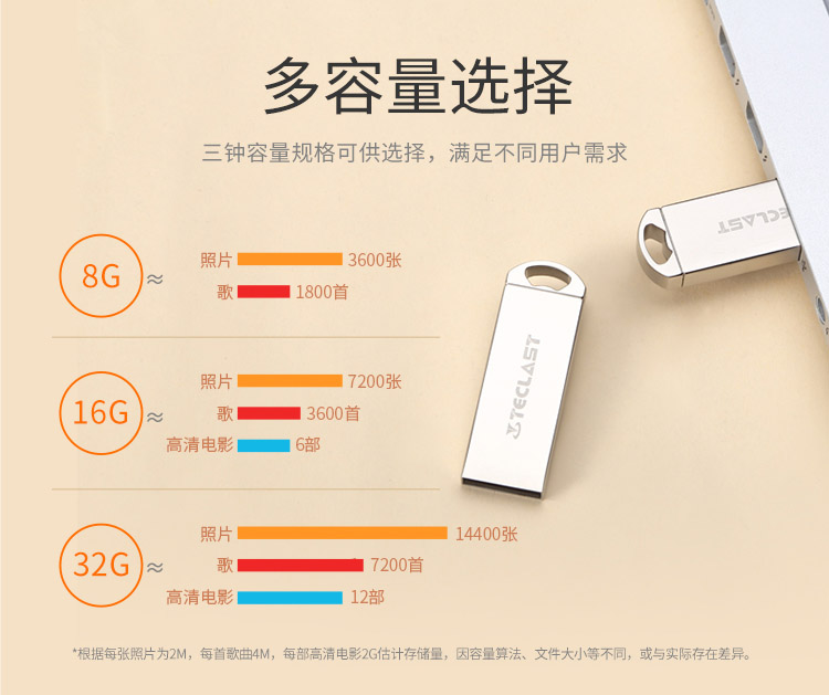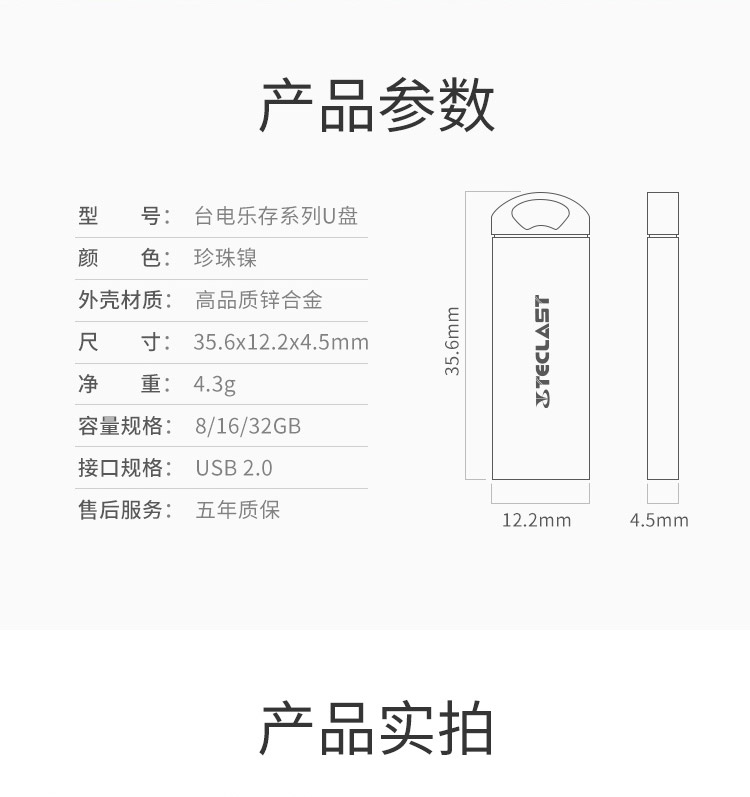 台电(Teclast) 8GB USB2.0 U盘 乐存系列 香槟金 招标投标小U盘 防水抗摔便携轻巧 迷你车载金属优盘