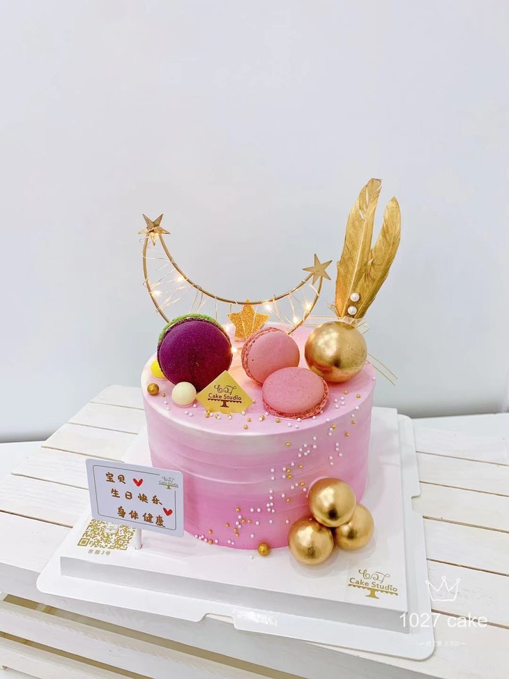 1027 Cake ins 紫色系 月亮主题 马卡龙装饰
