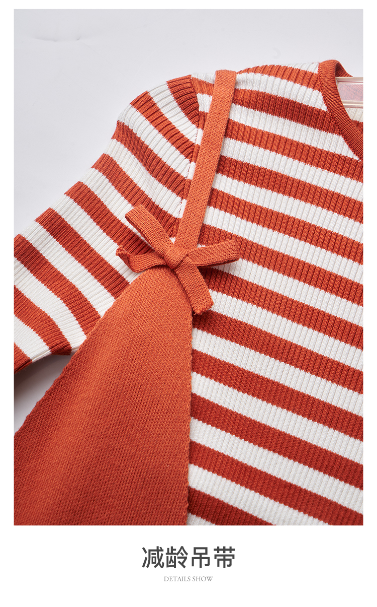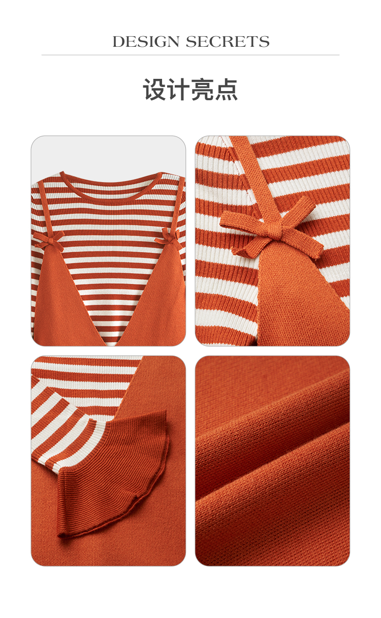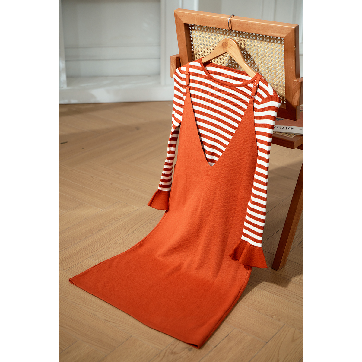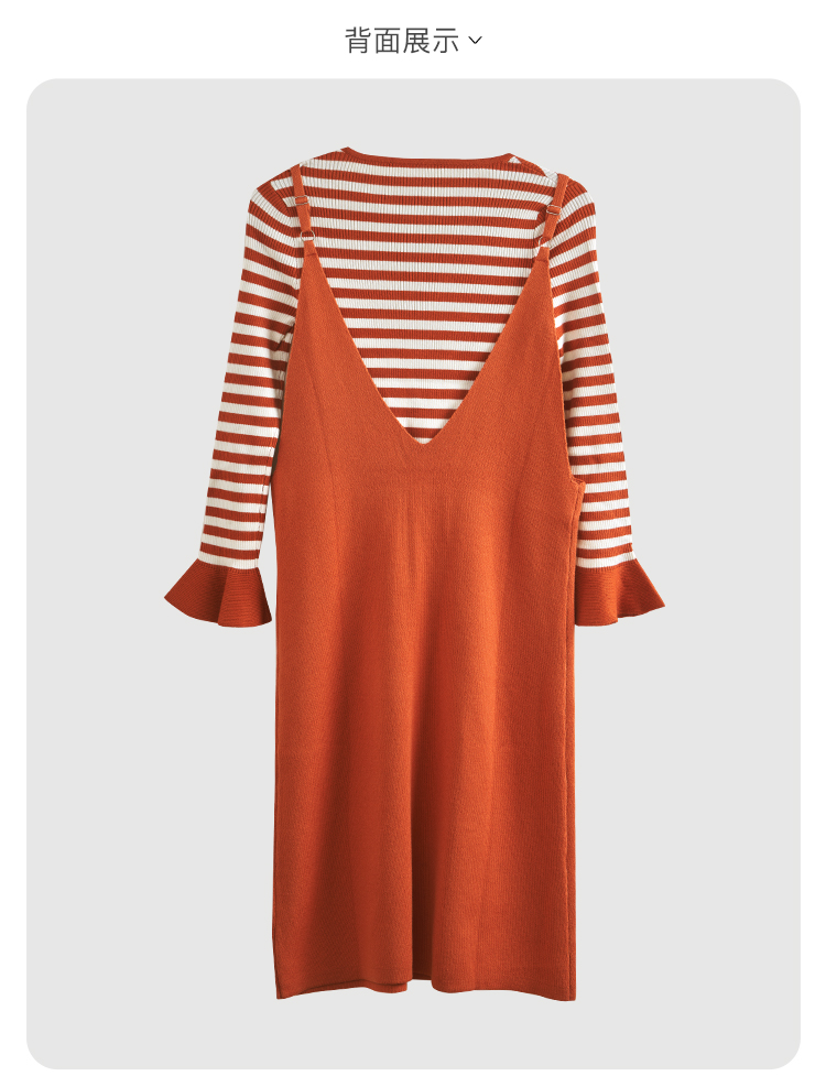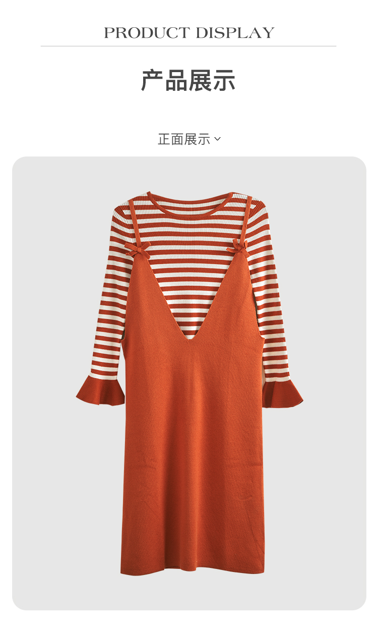 欧芮儿2019春 时尚套装吊带裙女装喇叭袖针织两件套连衣裙