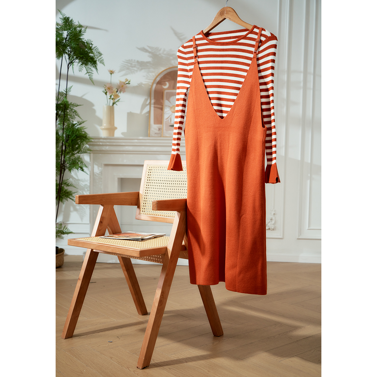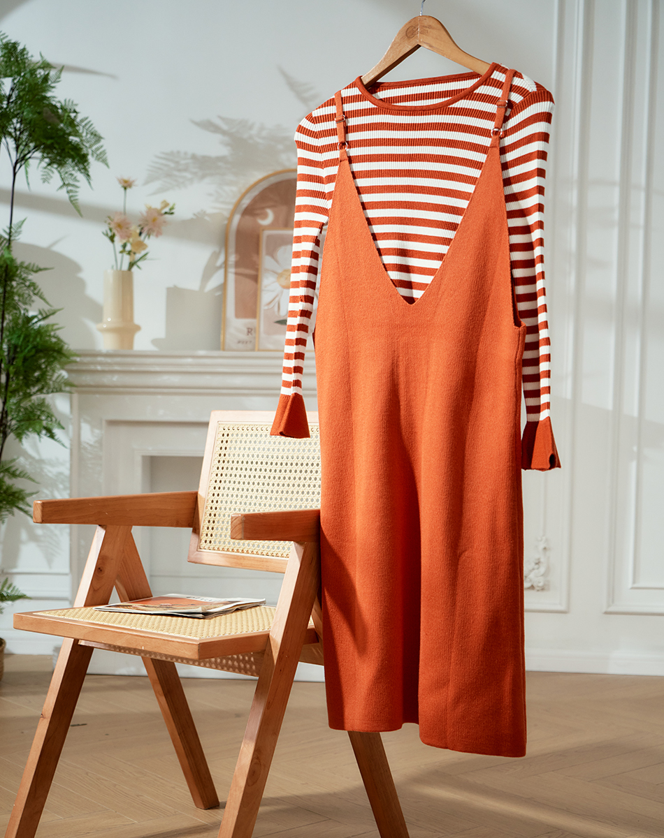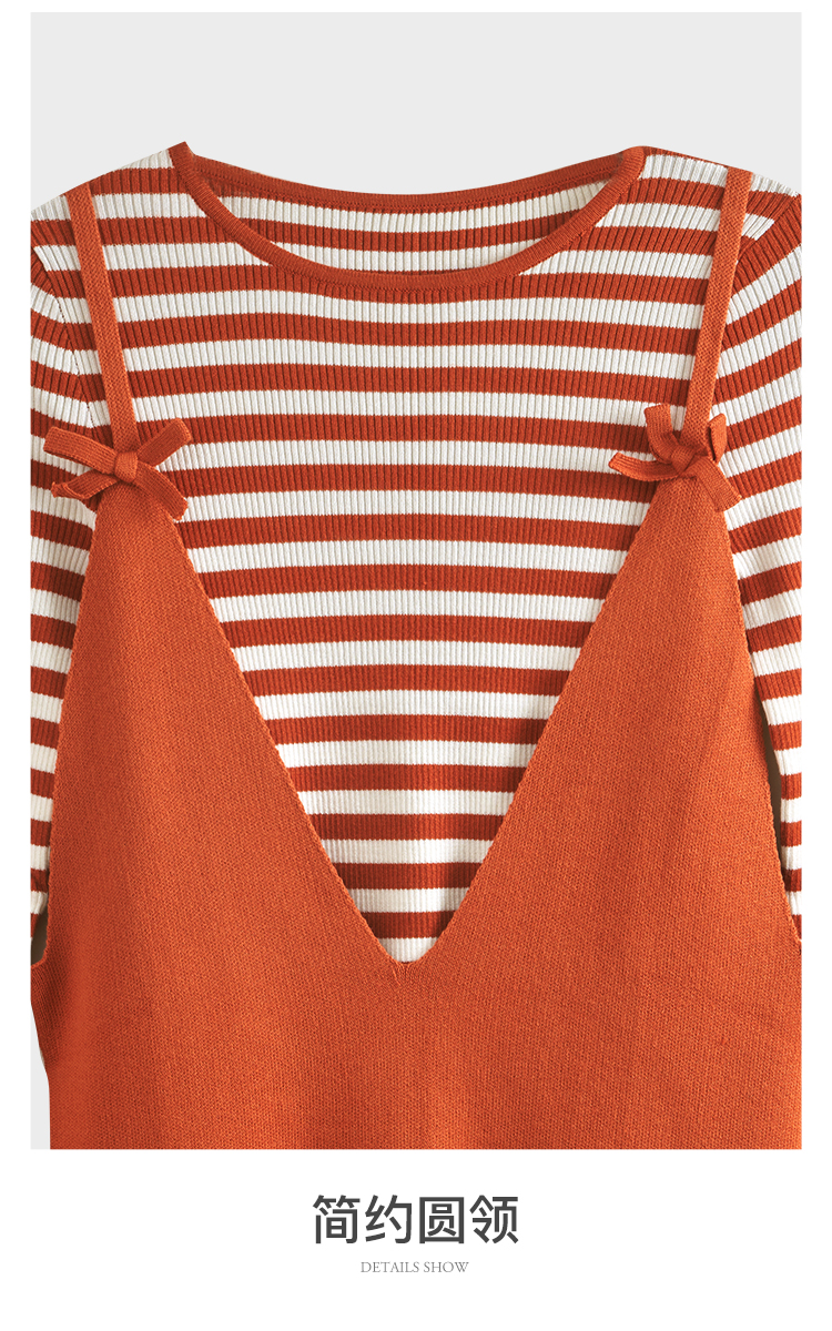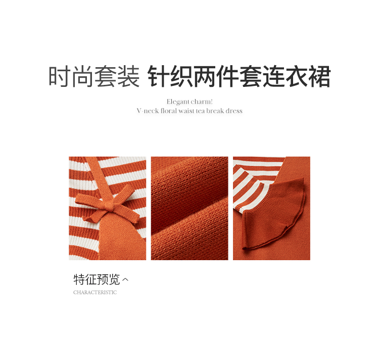 欧芮儿2019春 时尚套装吊带裙女装喇叭袖针织两件套连衣裙