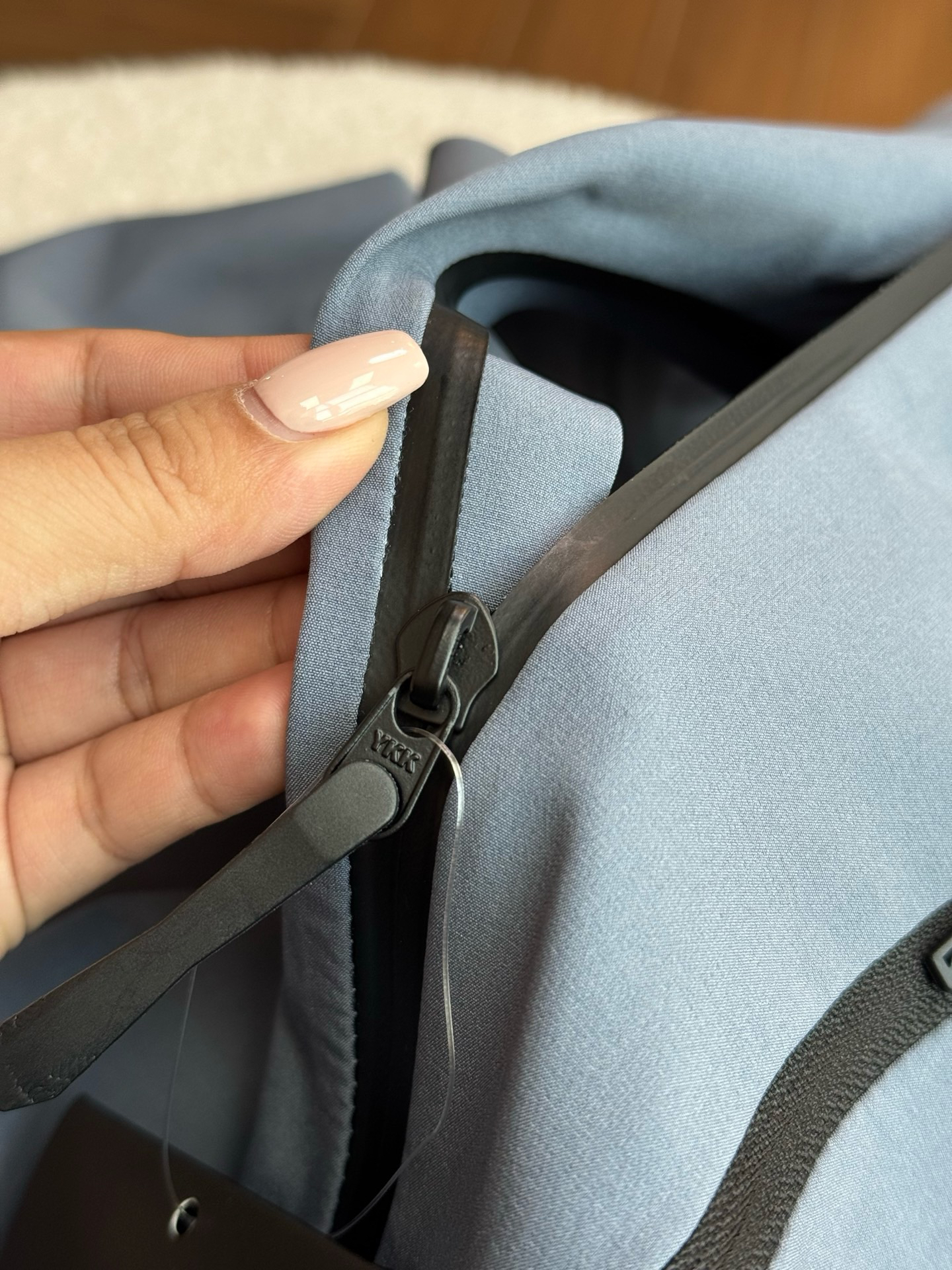 ‼️主拉链采用YKK定制拉链,拉链头印有品牌标识,开合顺滑且耐用性强,内侧配有防风挡片,进一步增强防护性。
