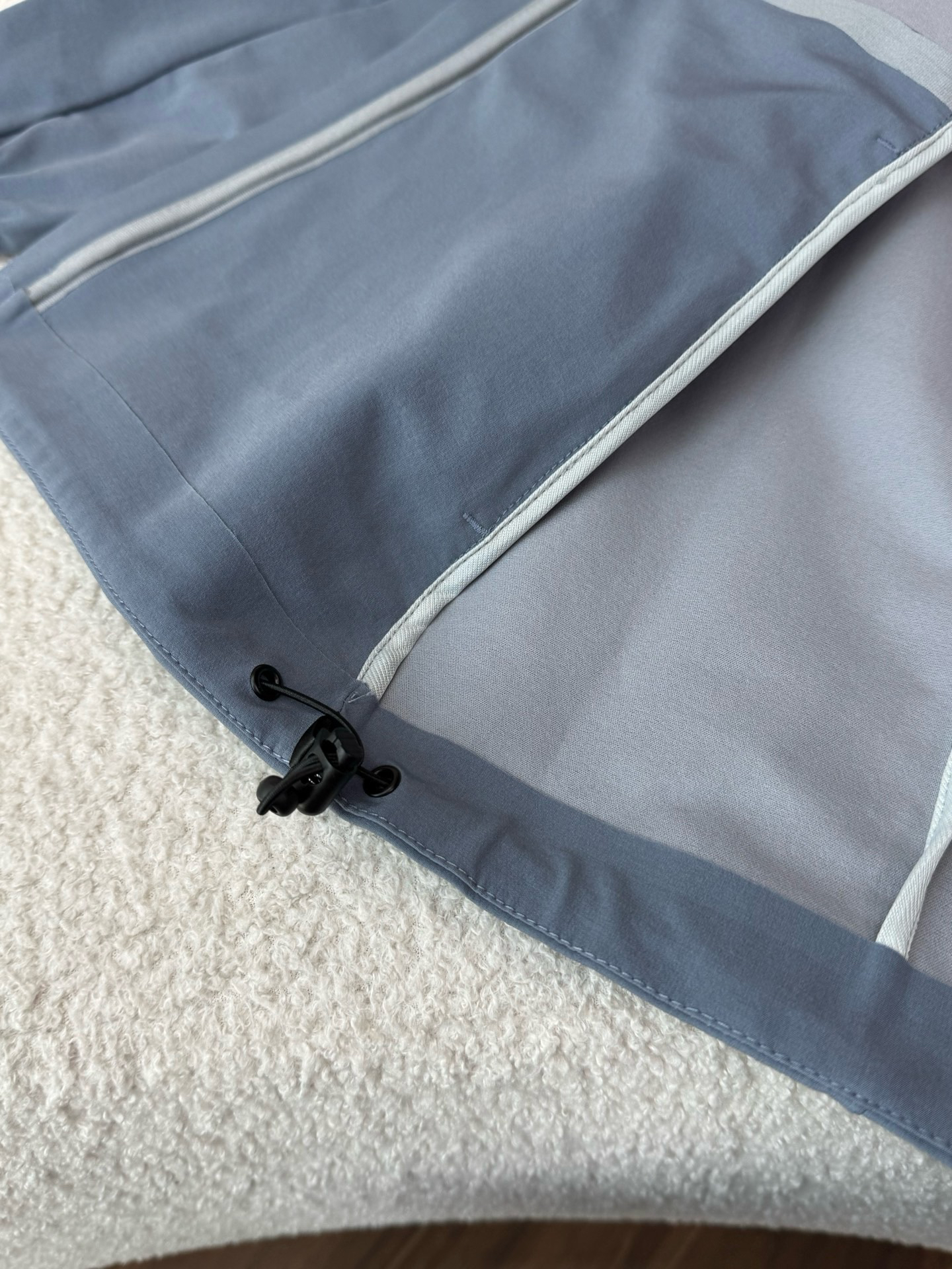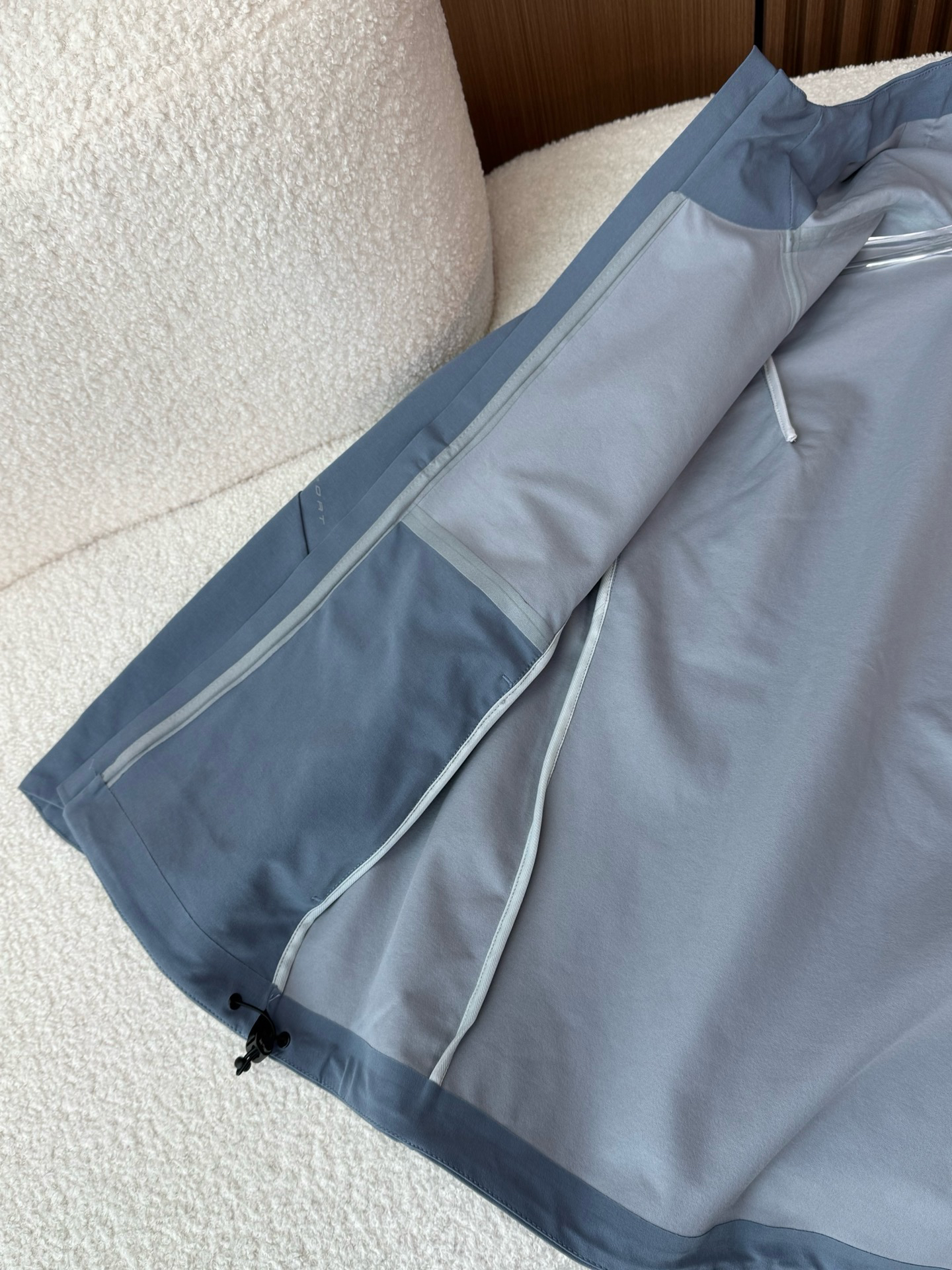衣摆两侧配备隐藏式调节抽绳,可自由调节下摆松紧,增强穿着时的包裹性。