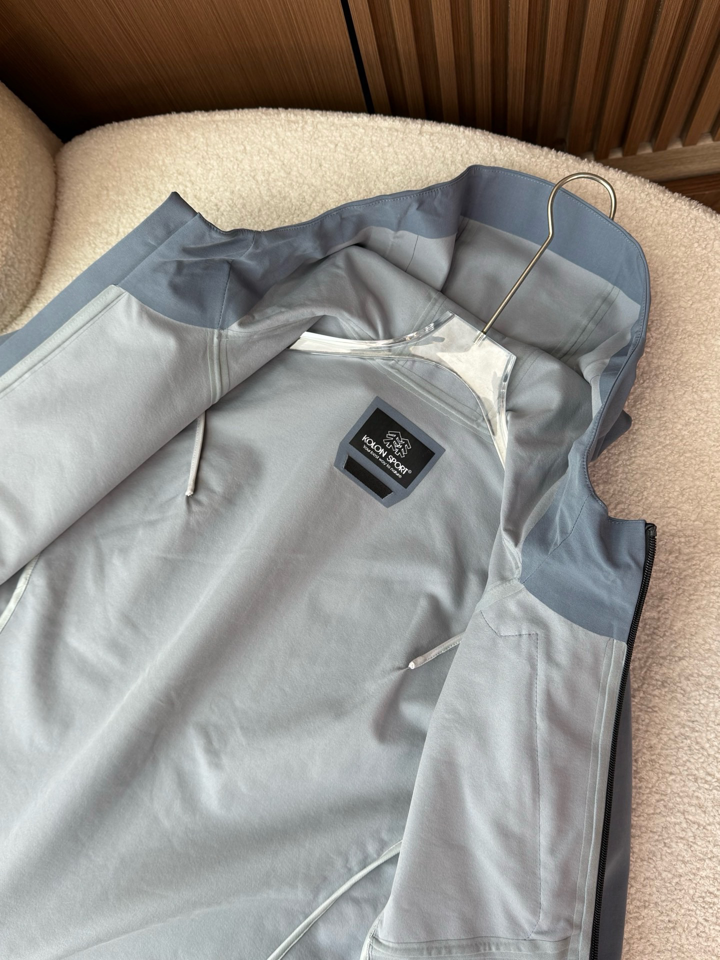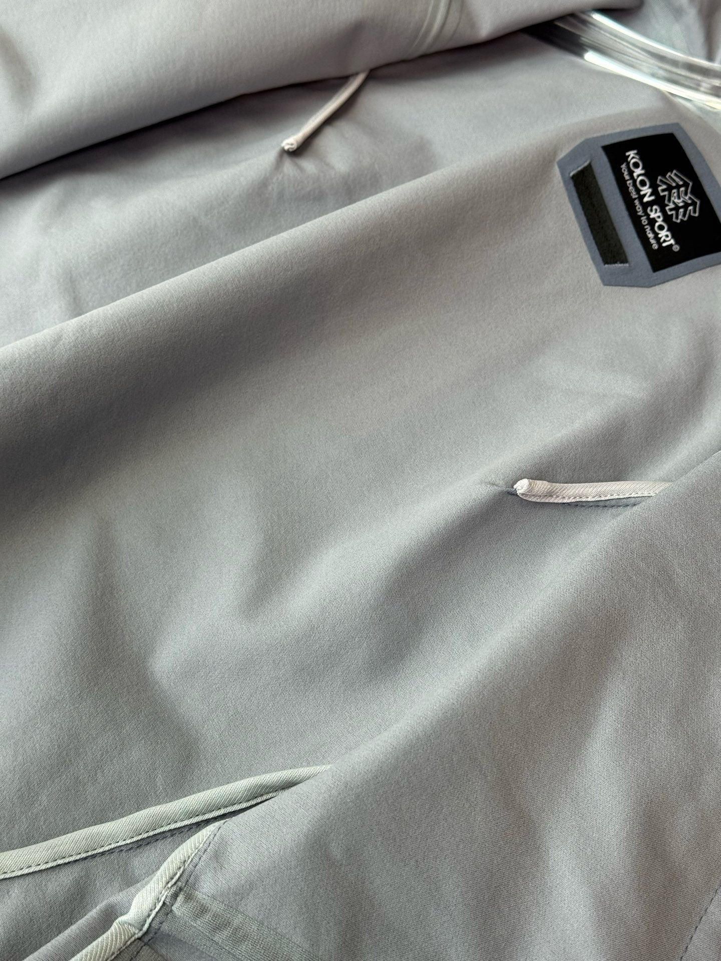 袖身外侧采用压胶工艺印有“KOLON SPORT”品牌字样,与胸前标识形成呼应