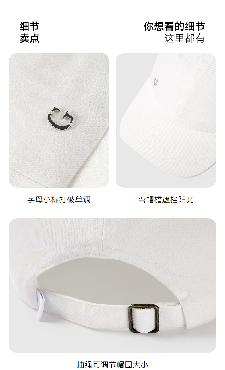 GXG男装 帽子男春季棒球帽2024热卖大头围显脸小鸭舌帽时尚潮流