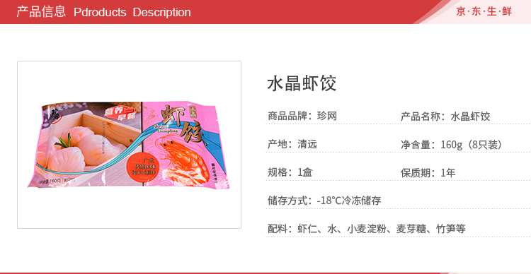 珍网 水晶虾饺160g 8只 早餐点心 广式早茶 蒸饺 饺子 火锅食材 粤菜 方便菜