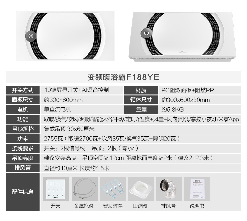 欧普(OPPLE)柔风抱抱暖风暖浴霸集成吊顶卫生间暖风机换排气扇浴室灯F188