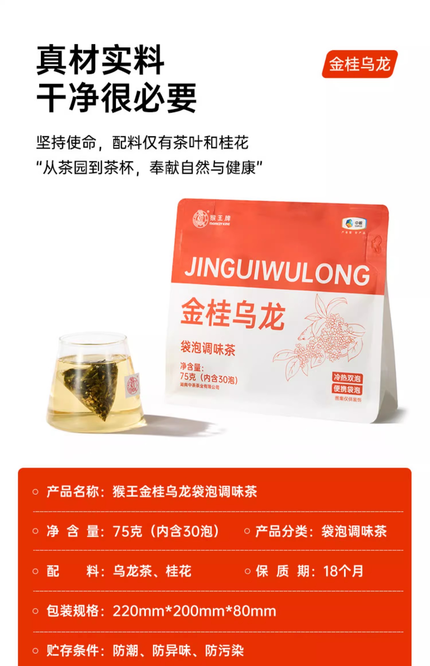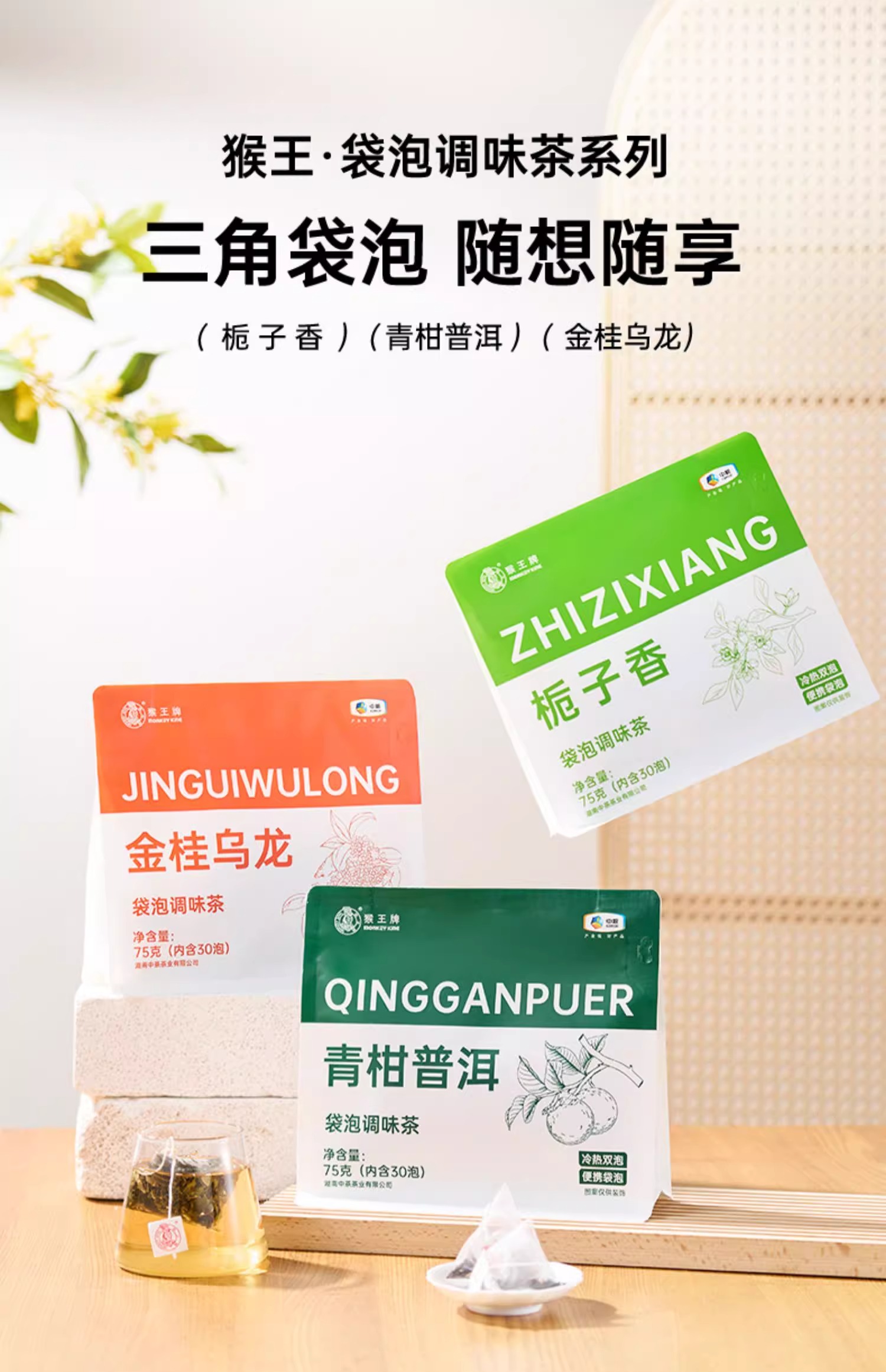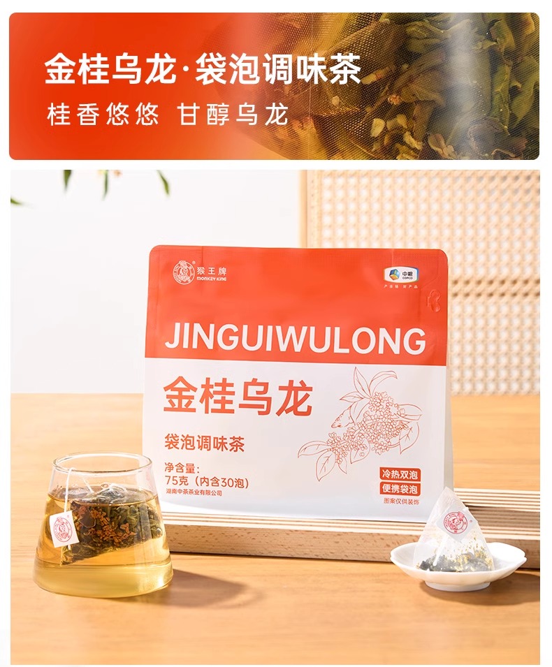 【秒杀】中茶猴王袋泡调味茶75g/袋(金桂乌龙/青柑普洱/栀子香三种口味任选)