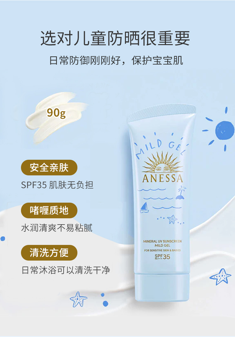 【跨境】资生堂安耐晒儿童防晒霜小蓝瓶脸部用90g(效期:2027/02)