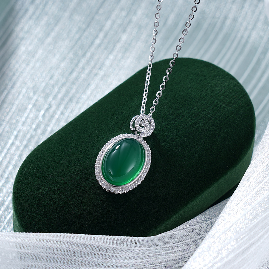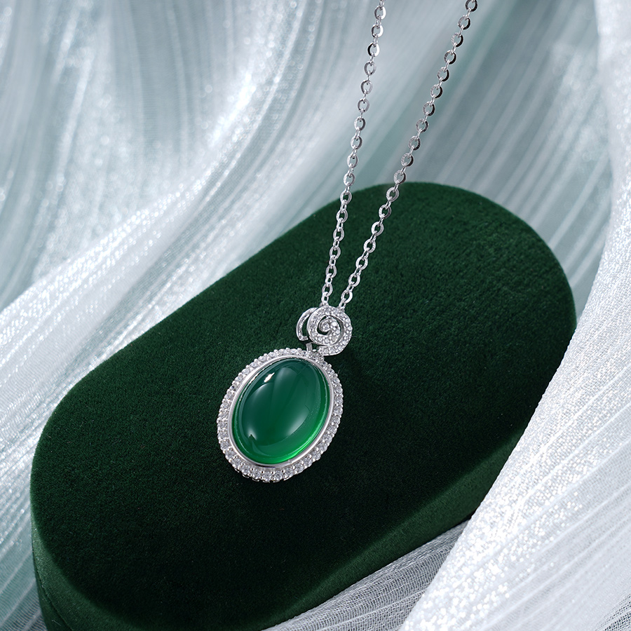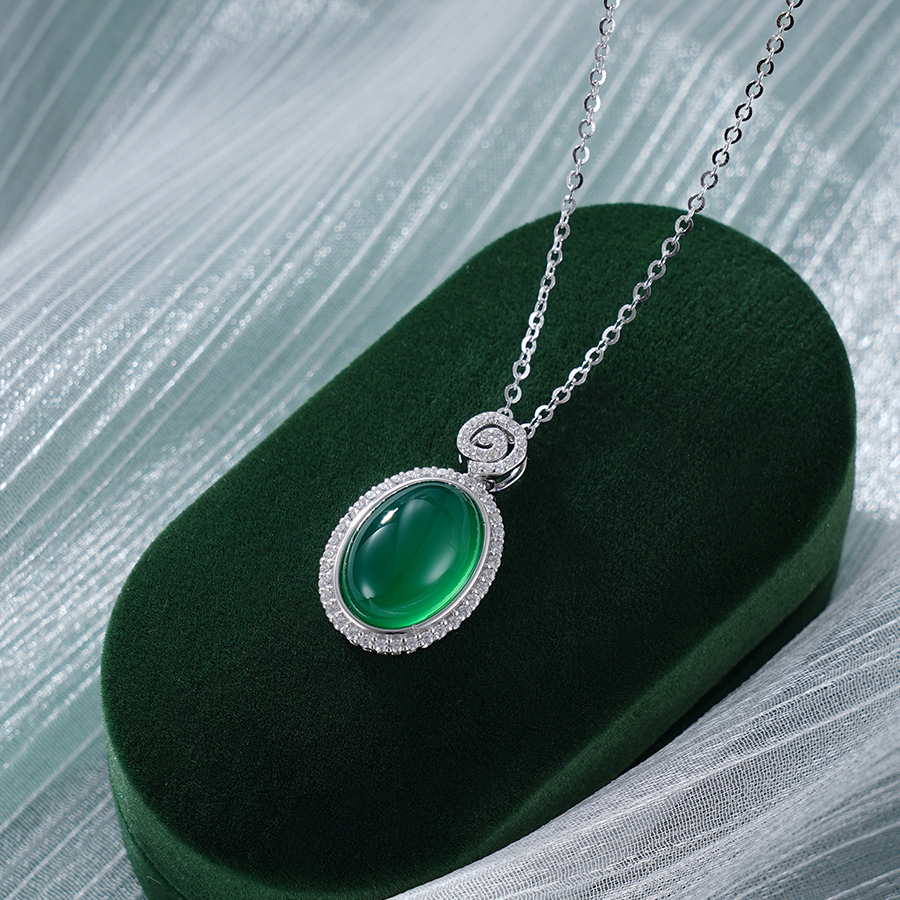 子佩集S925银【盛夏流光】套链【TL013148】纯银绿玉髓项链2412