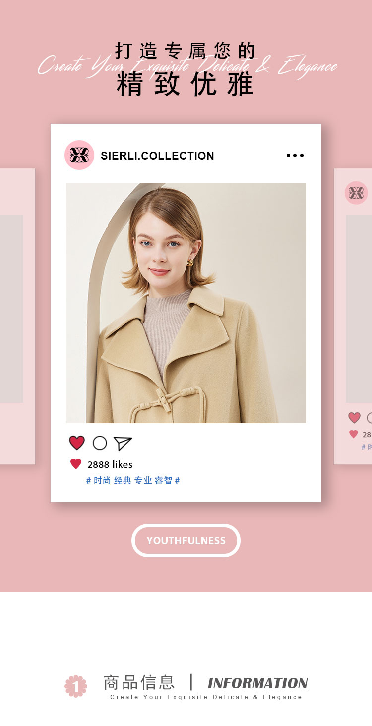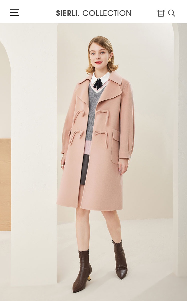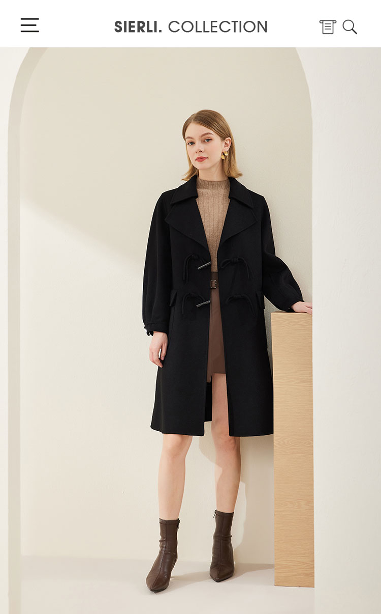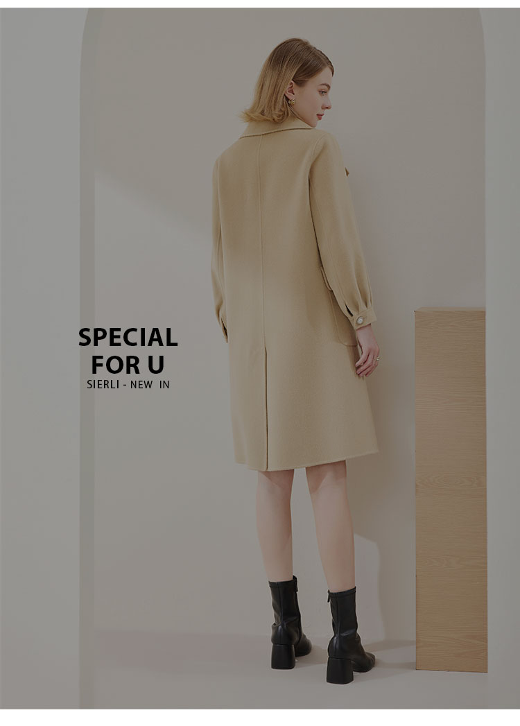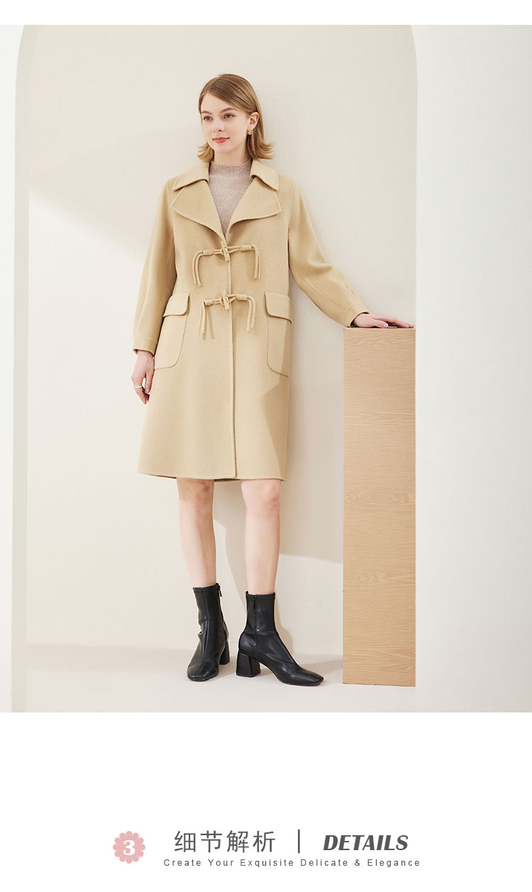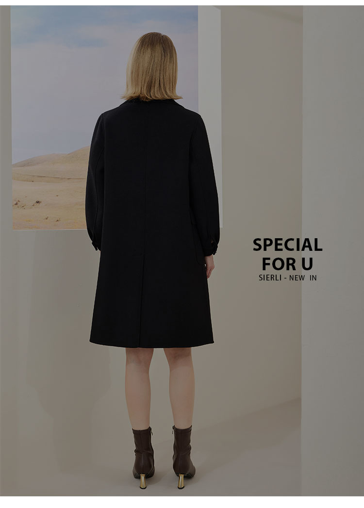MH9C5斯尔丽瑟俪2022年冬上新商场同款俏皮时尚松树领牛角扣后开叉大衣
