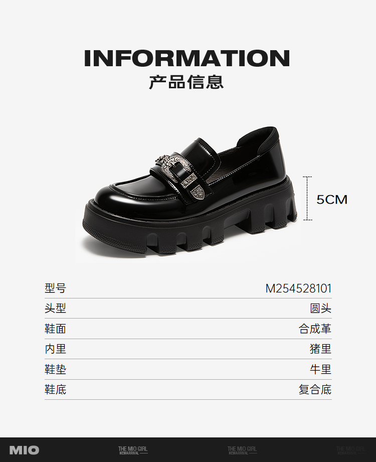 MIO米奥高跟乐福鞋女秋新款黑色一脚蹬英伦风厚底增高jk单鞋M254528101