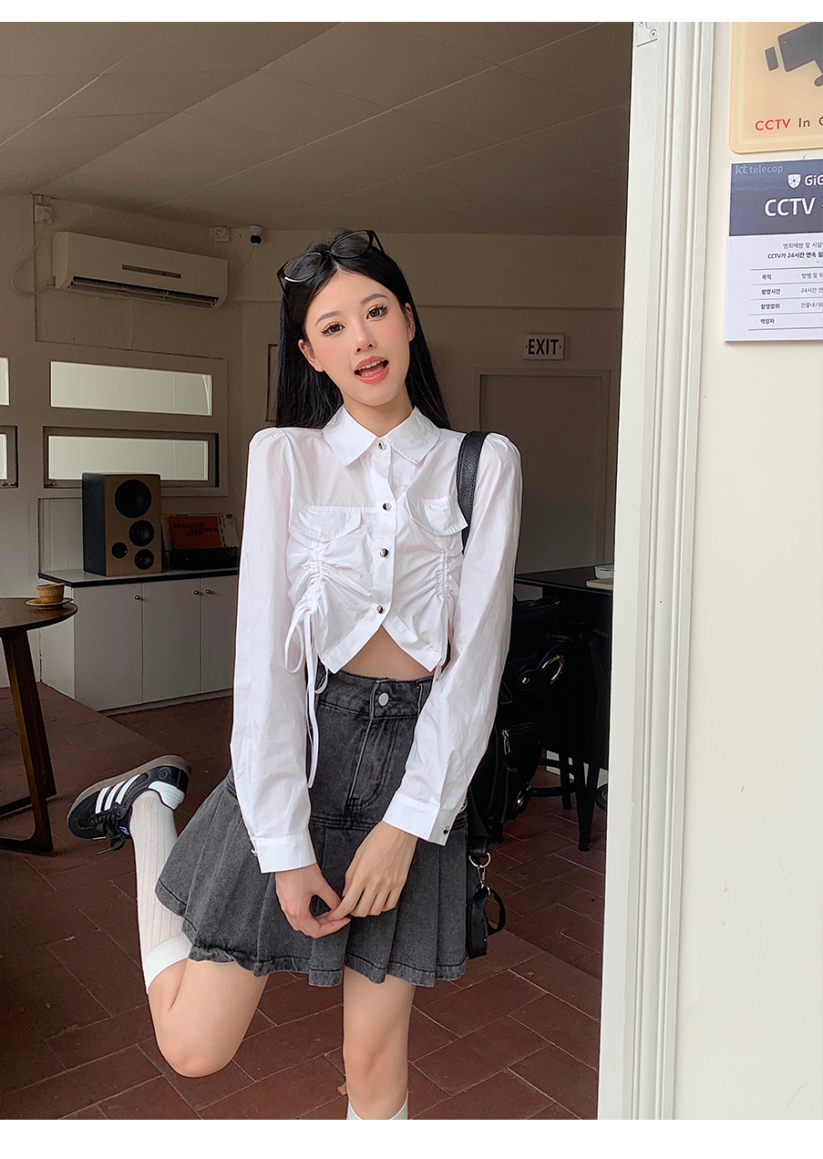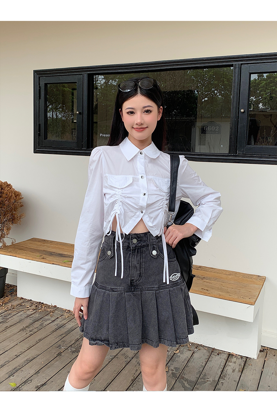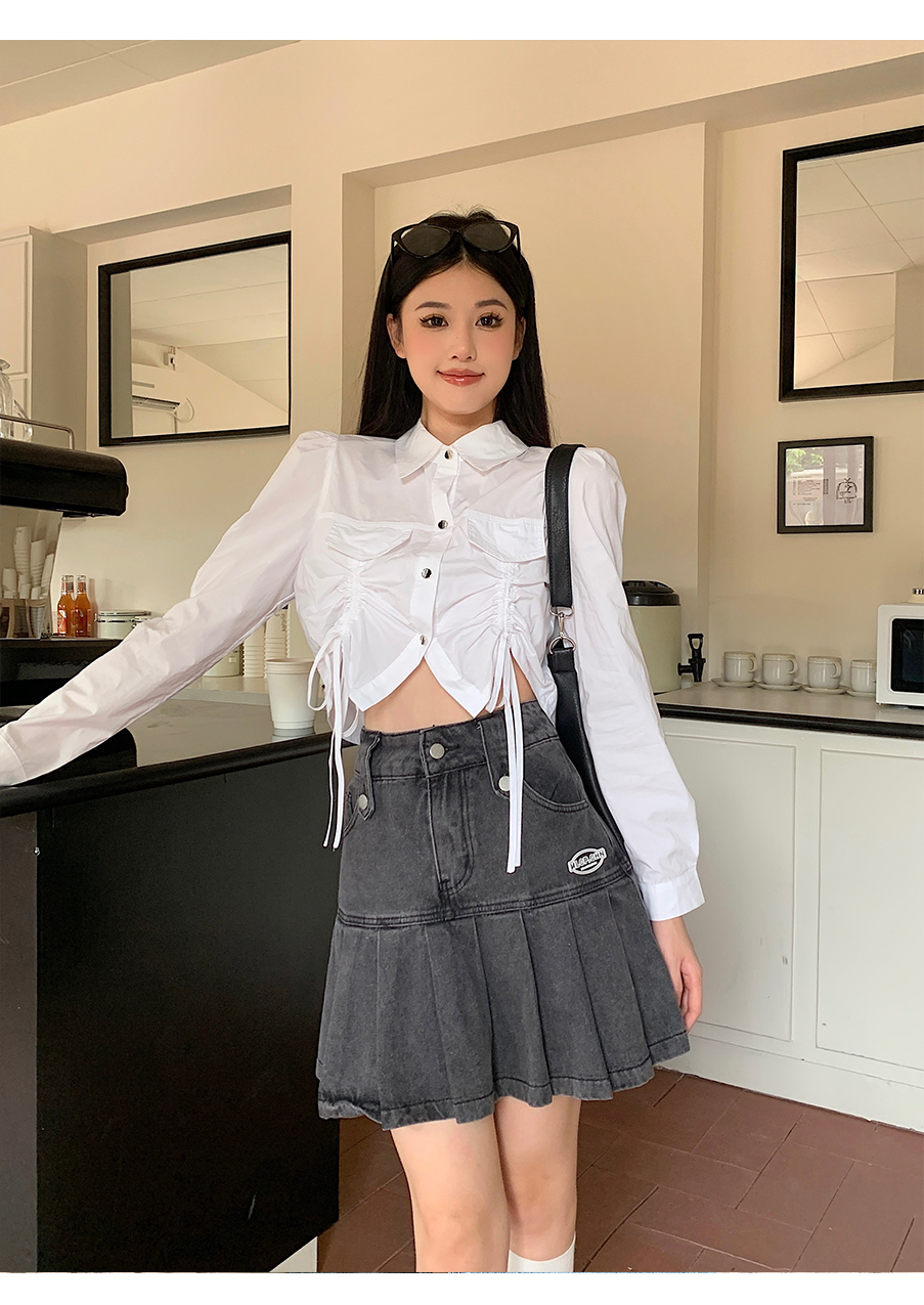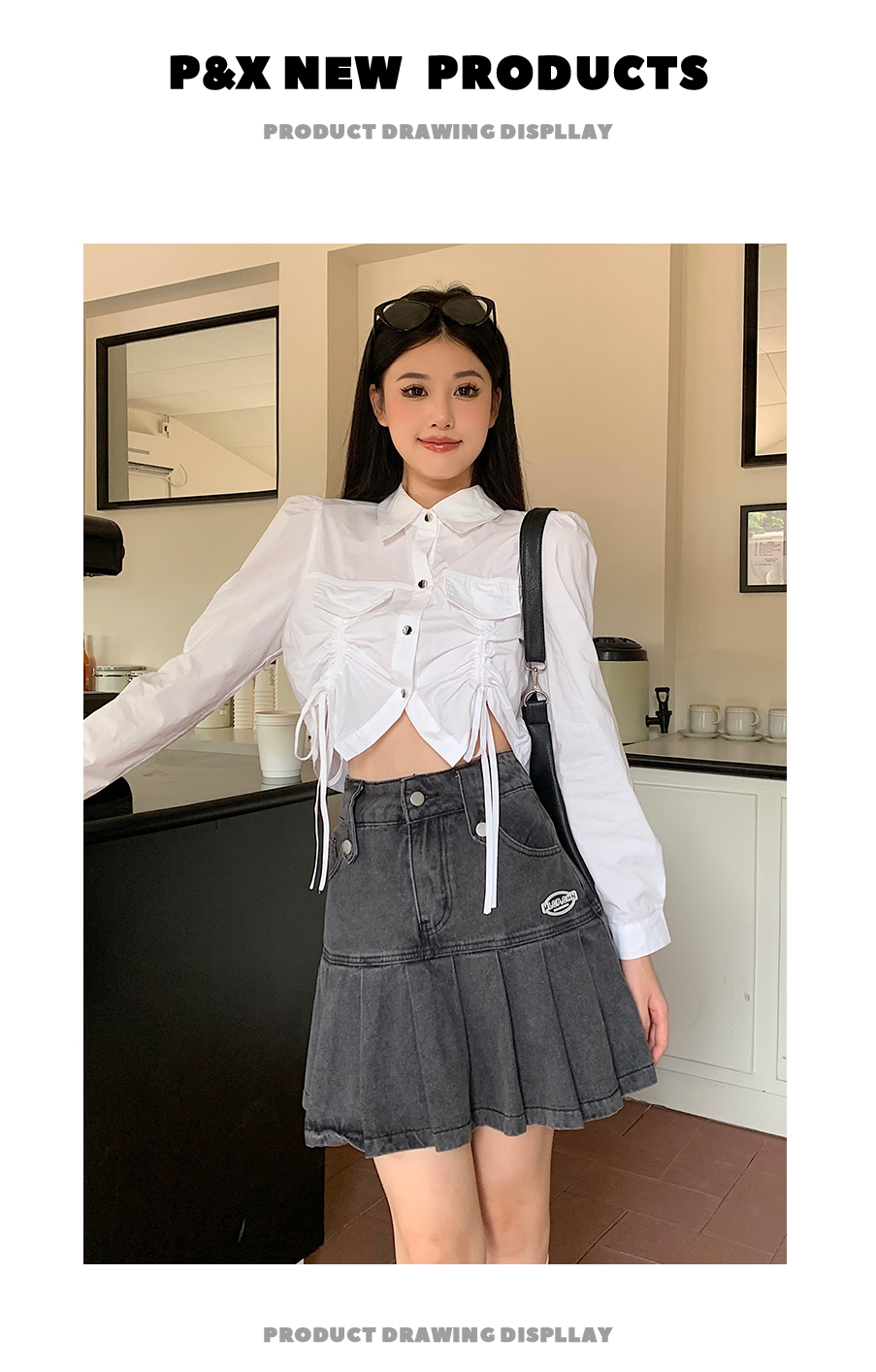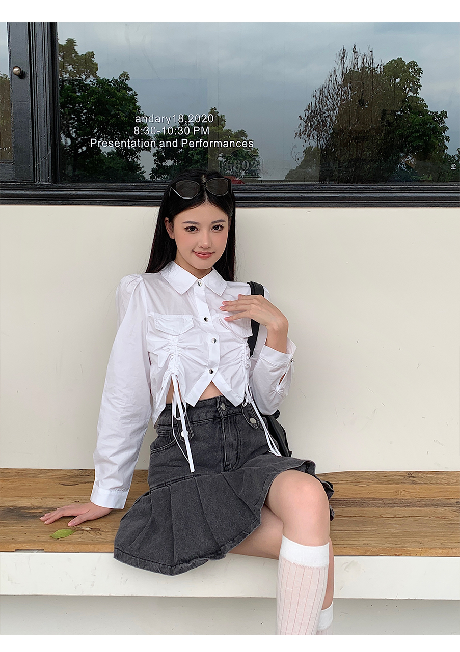 P&X设计师女装2023秋季新款 短款衬衫女长袖 823305491B 白色