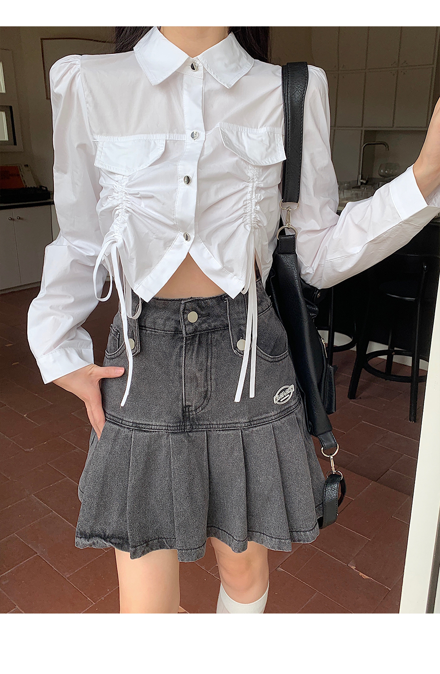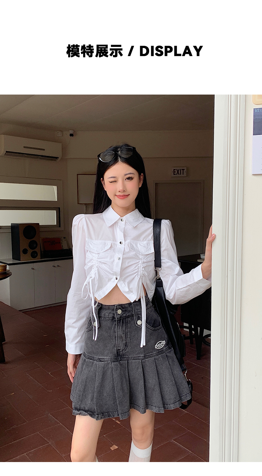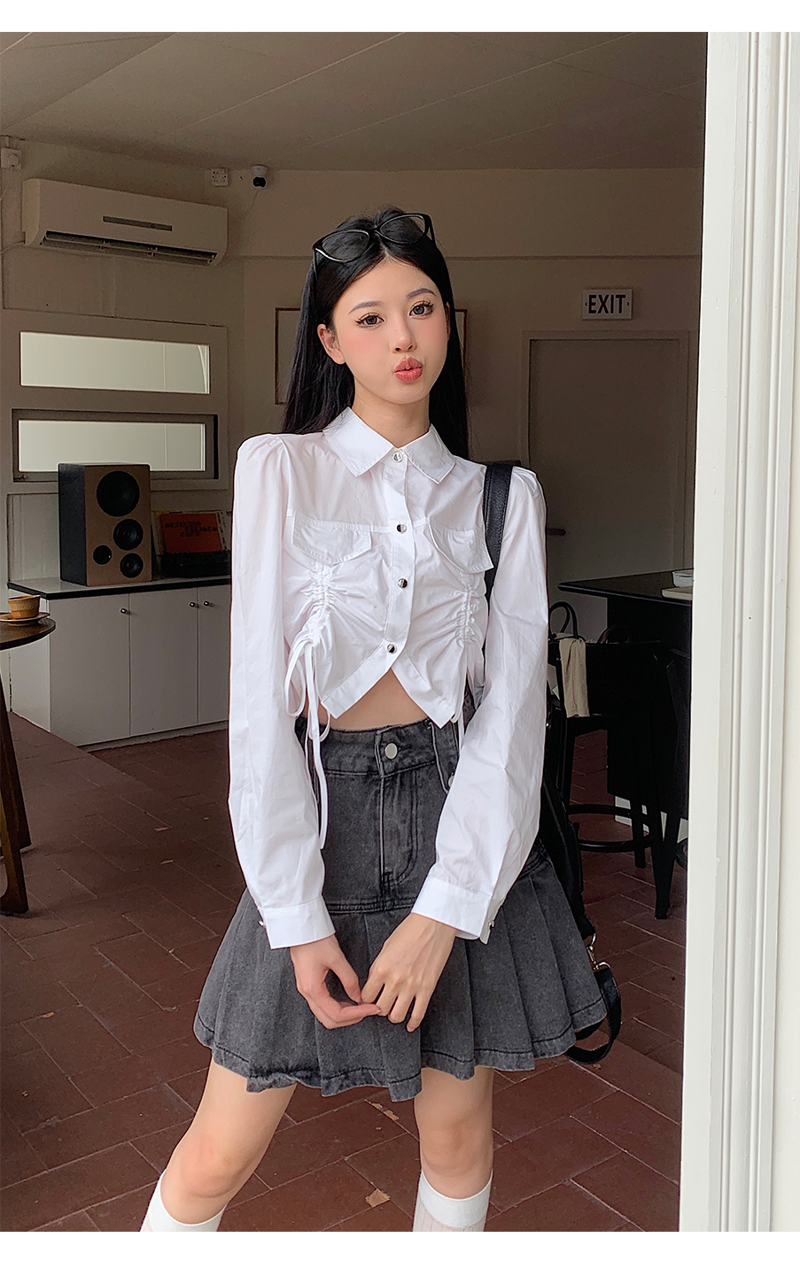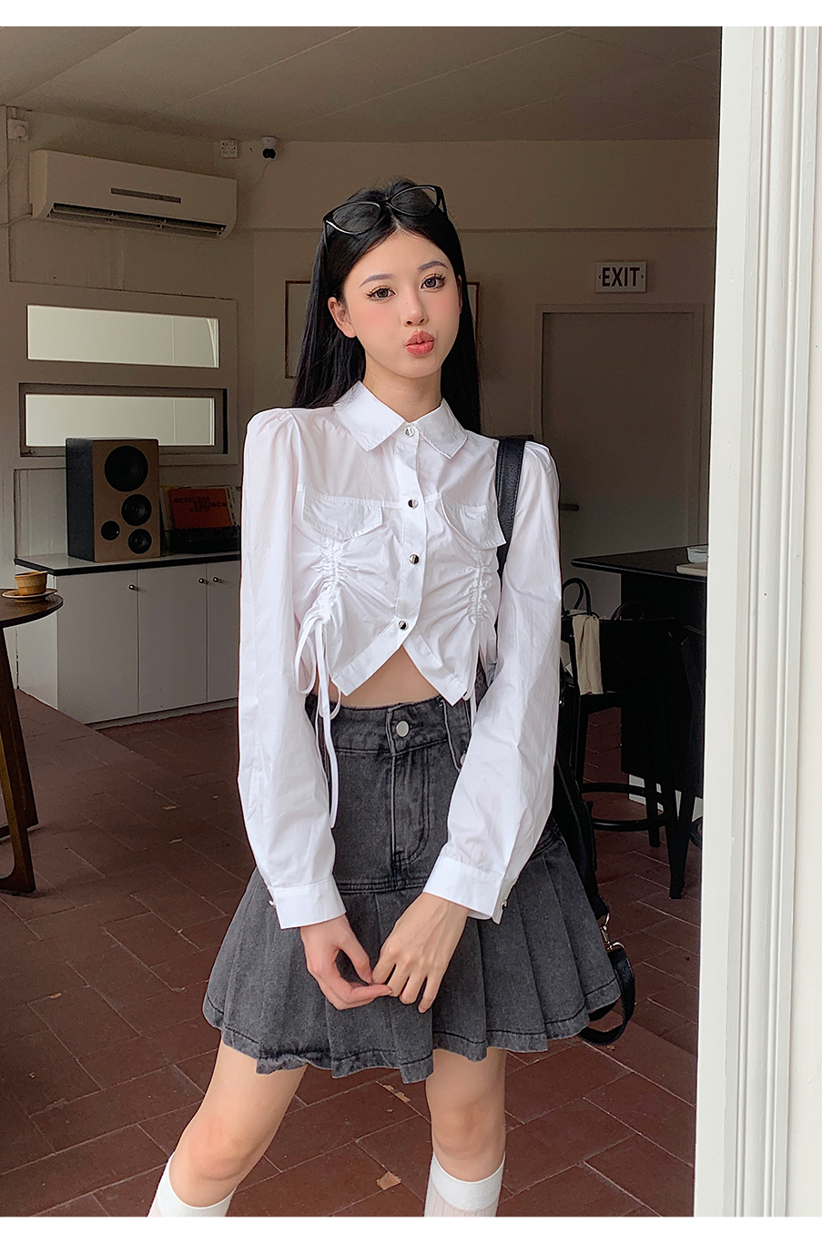P&X设计师女装2023秋季新款 短款衬衫女长袖 823305491B 白色
