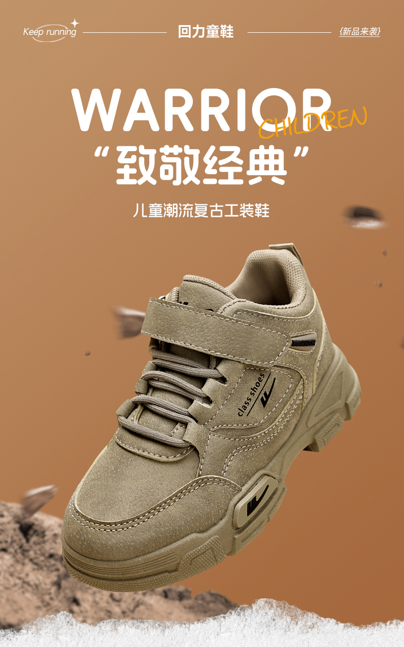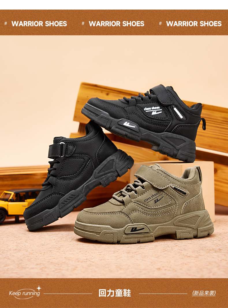 回力儿童马丁靴2024秋冬新款男孩校园工装靴子青少年户外登山童鞋