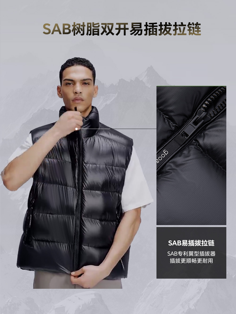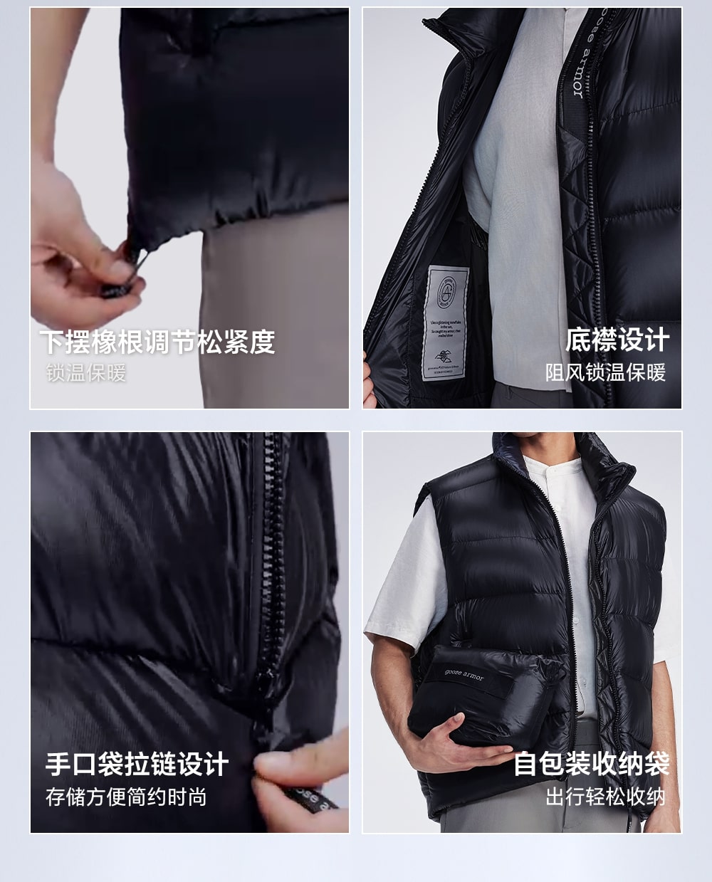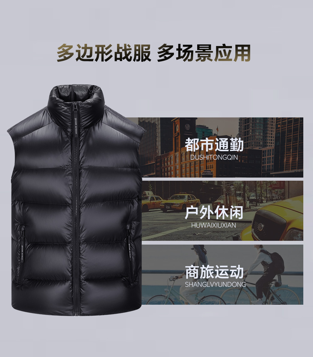 天石鹅铠甲白鹅绒羽绒马甲男女同款立领加厚户外运动坎肩东北严寒G423