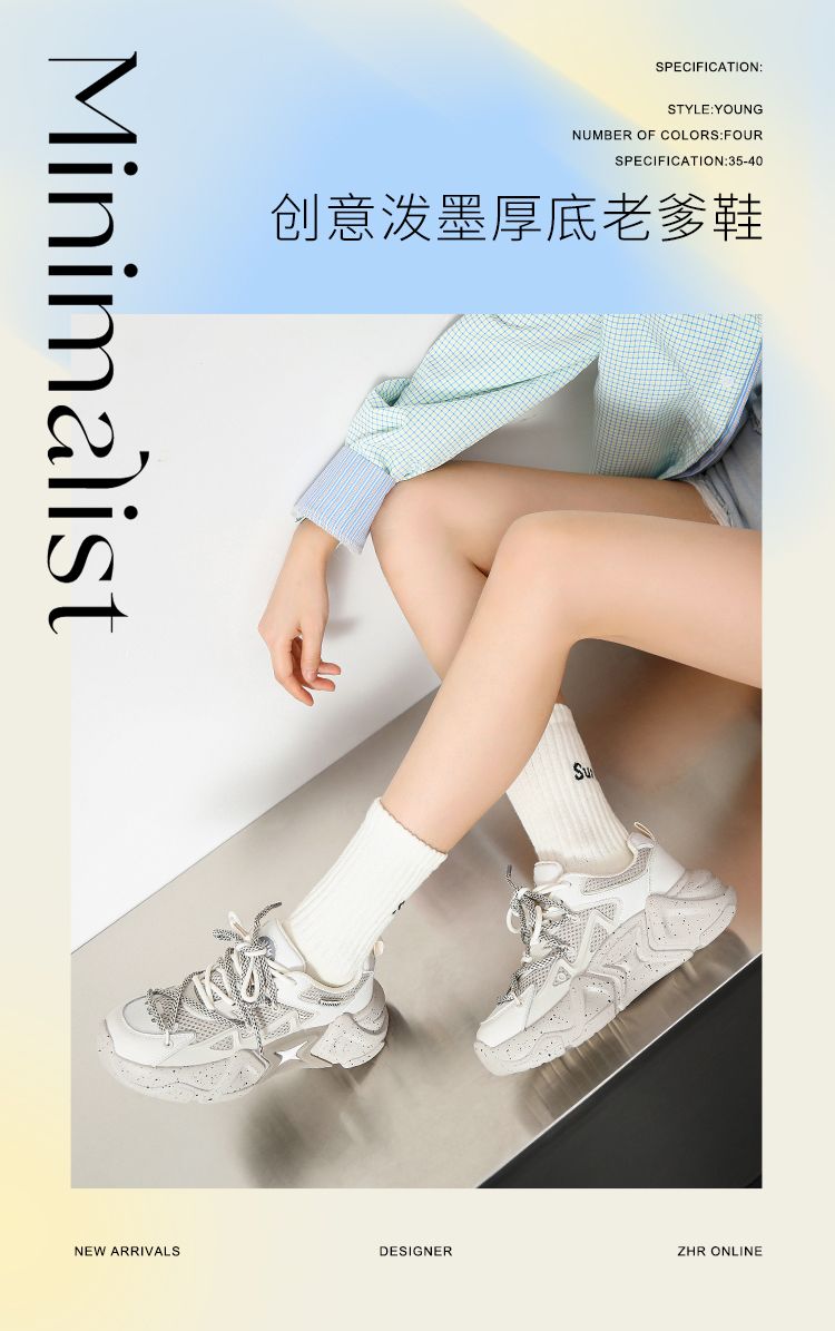 ZHR情侣款老爹鞋2023新款时尚透气鞋子男厚底ins潮款爆款情侣鞋子