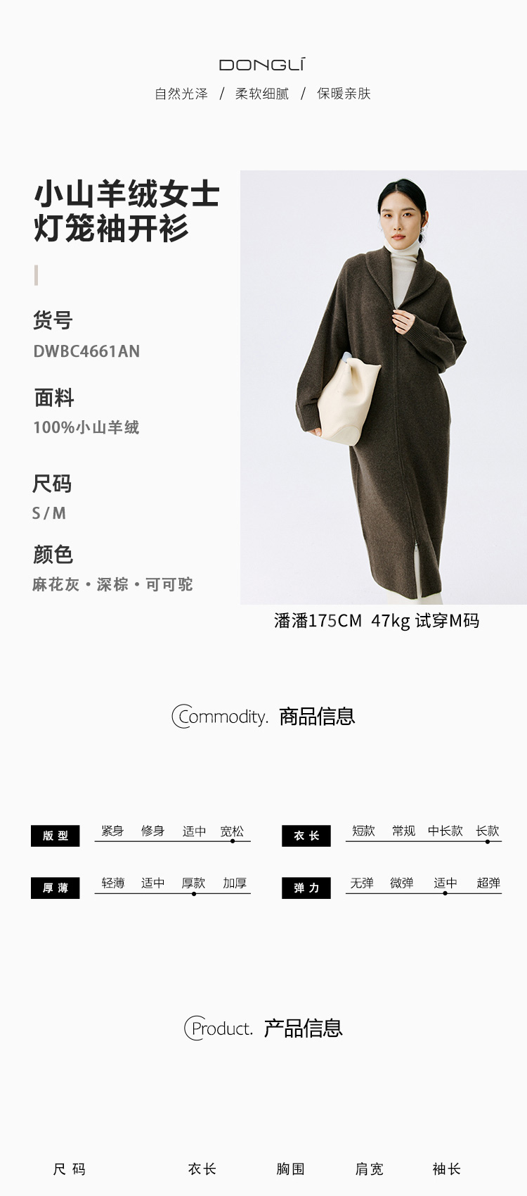 东黎 • 小山羊绒女士秋冬灯笼袖宽松开衫 4661
