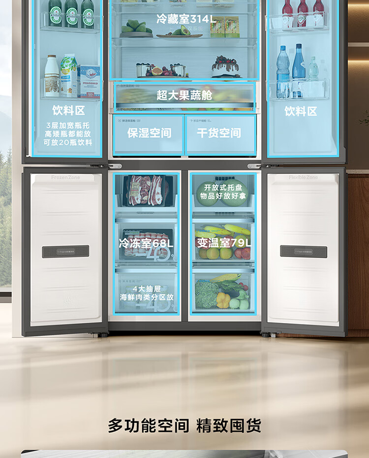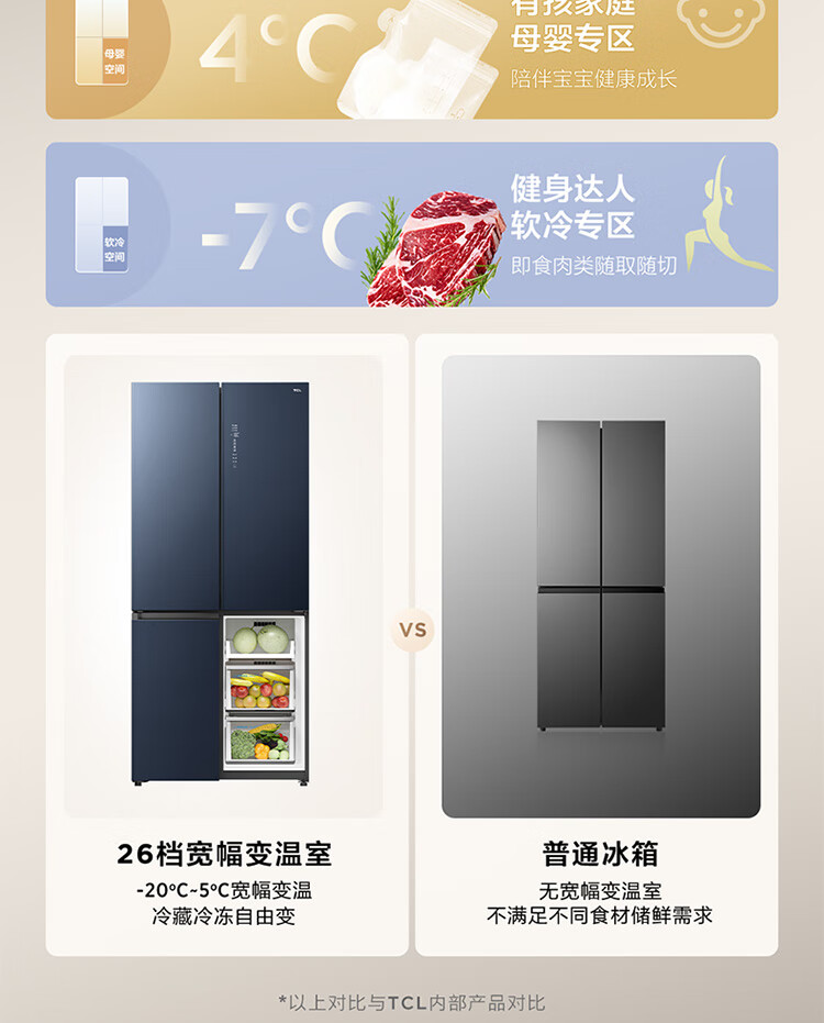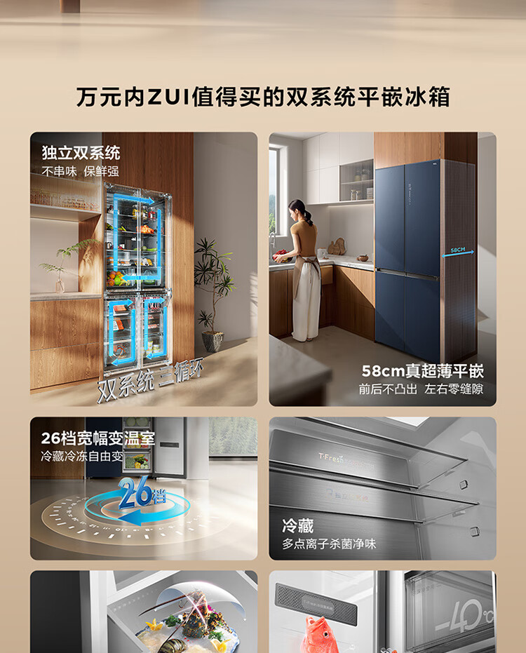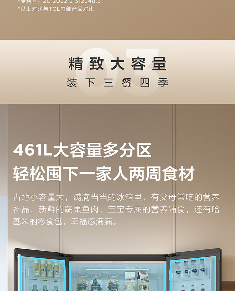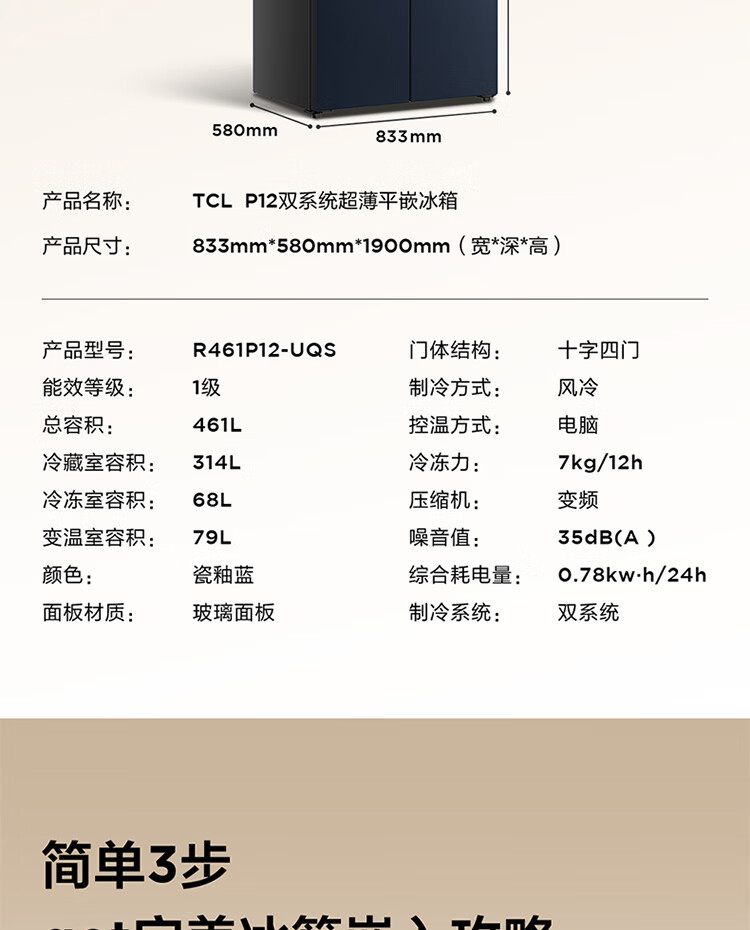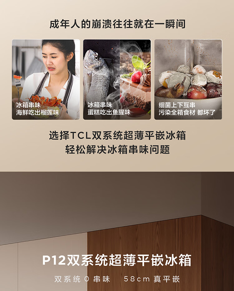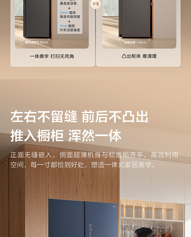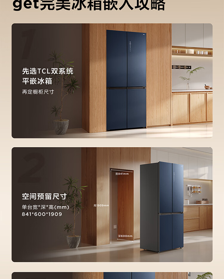 TCL461升独立双系统平嵌冰箱_58cm超薄_超宽幅变温_-40晶态膜锁鲜_R461P12-UQS(线下同款)