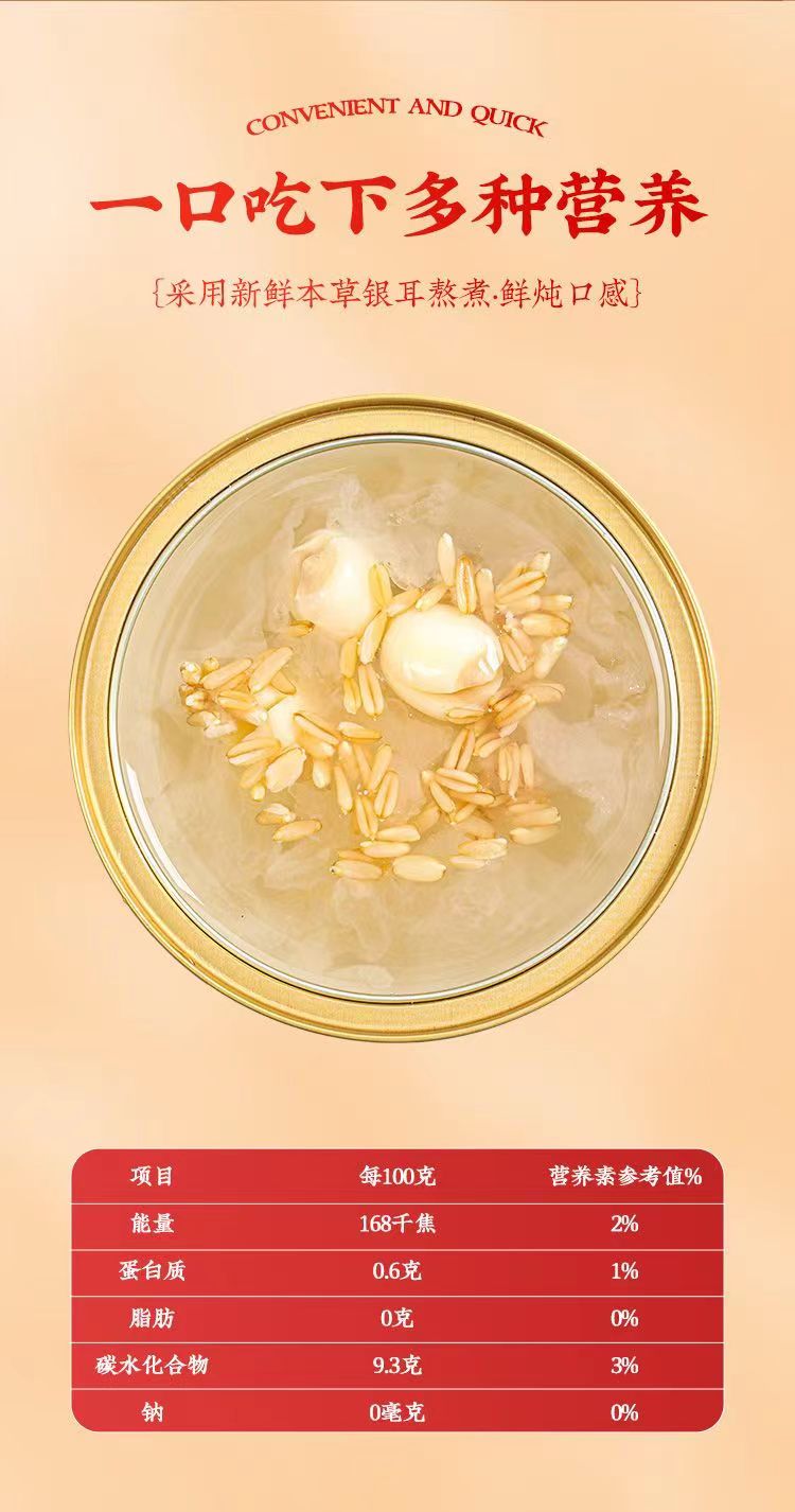 本草银耳鲜炖银耳羹开盖即食藜麦燕麦260g*6碗