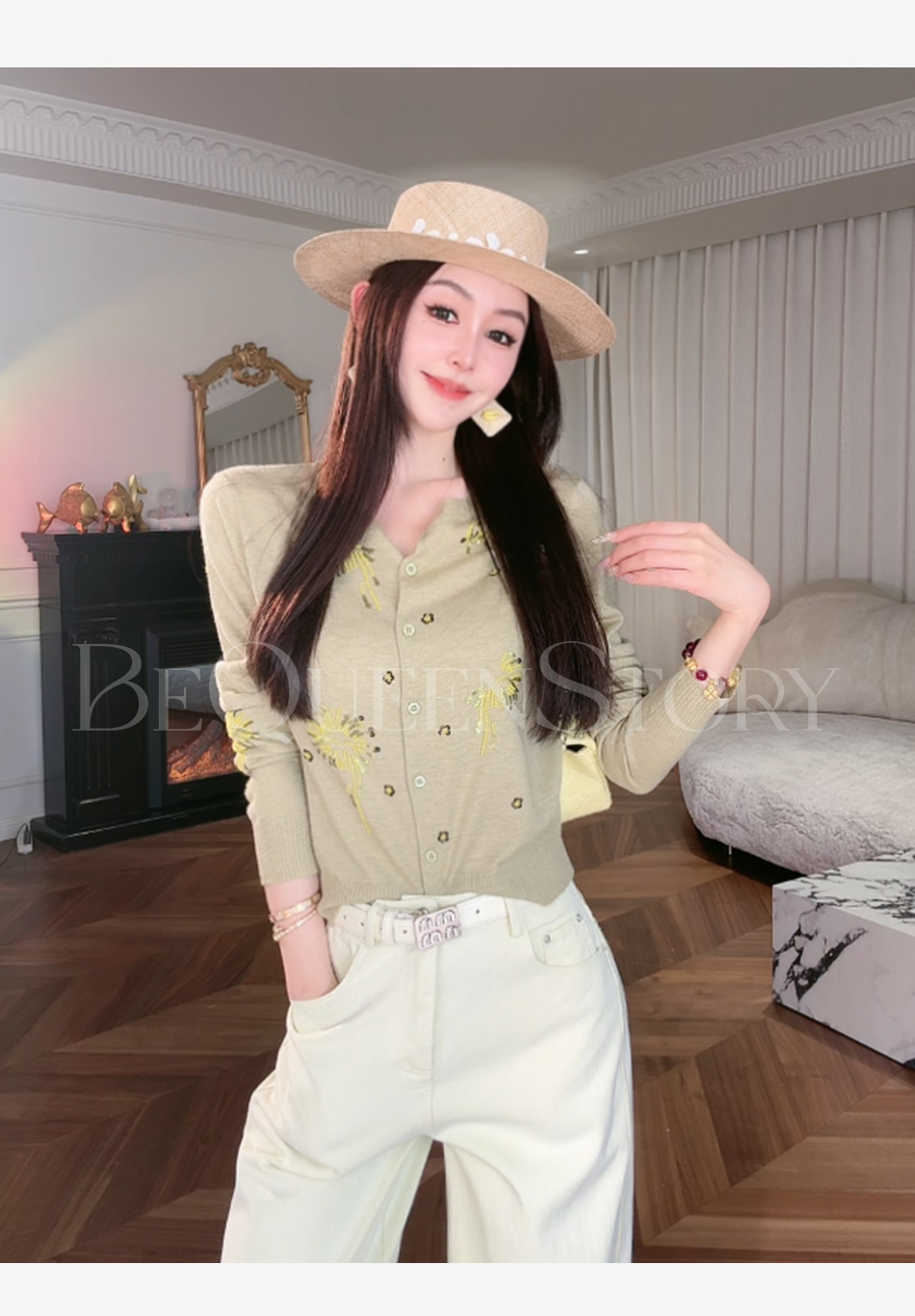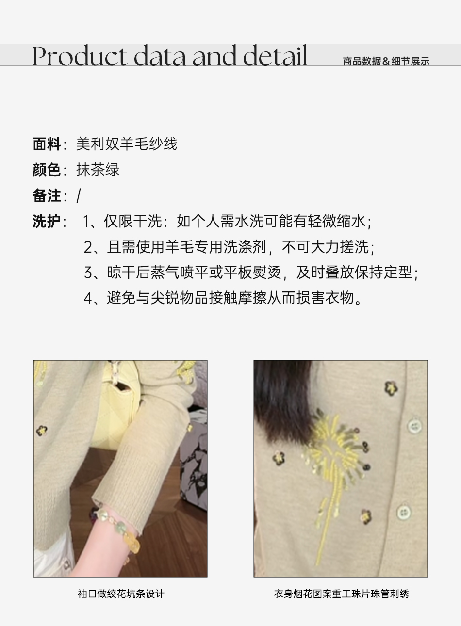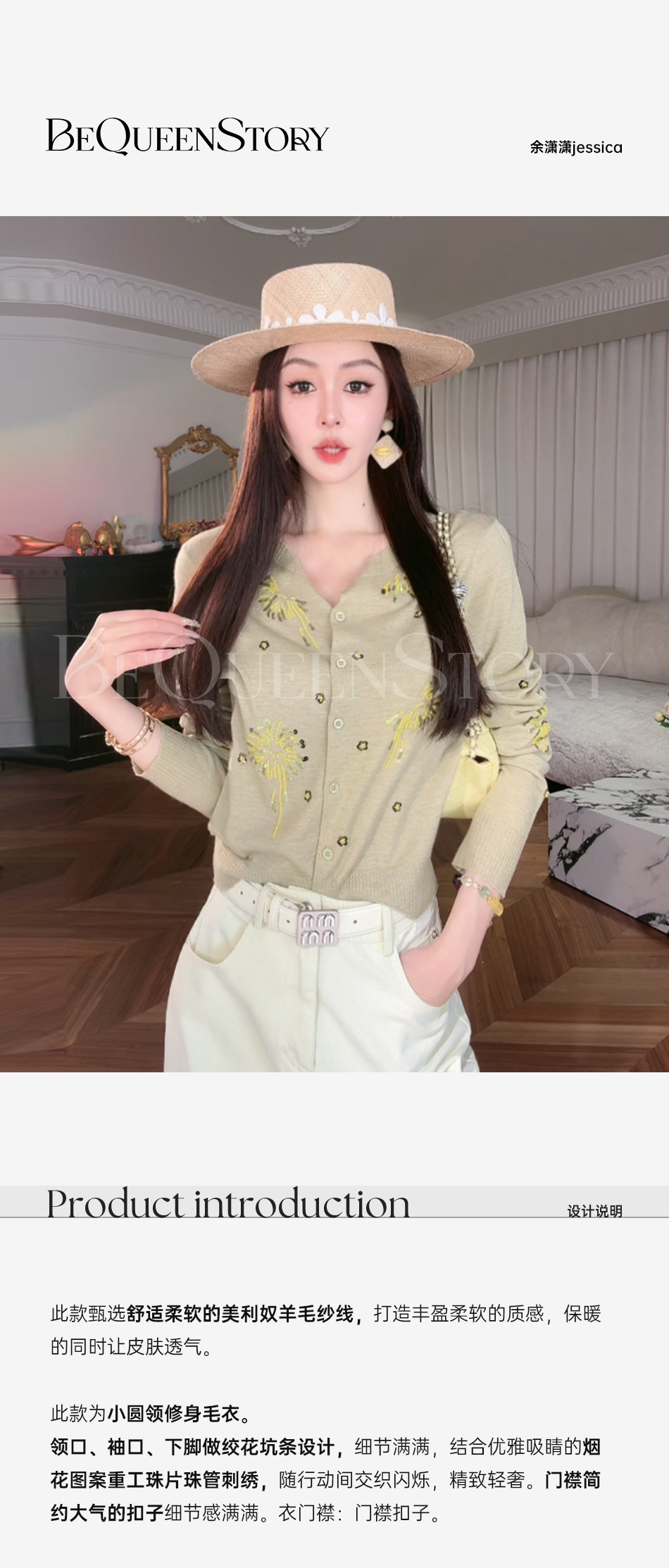 余潇潇【梦露奇想】2025春装新款珠片刺绣绵羊毛混纺圆领修身针织衫