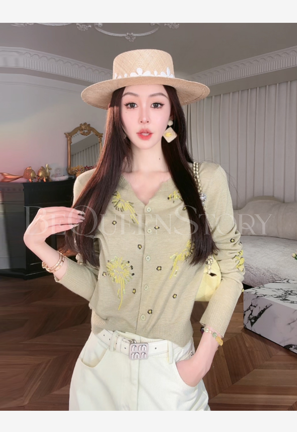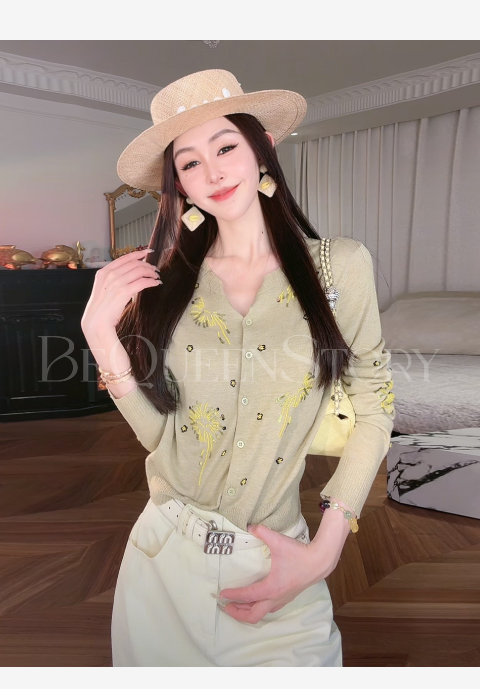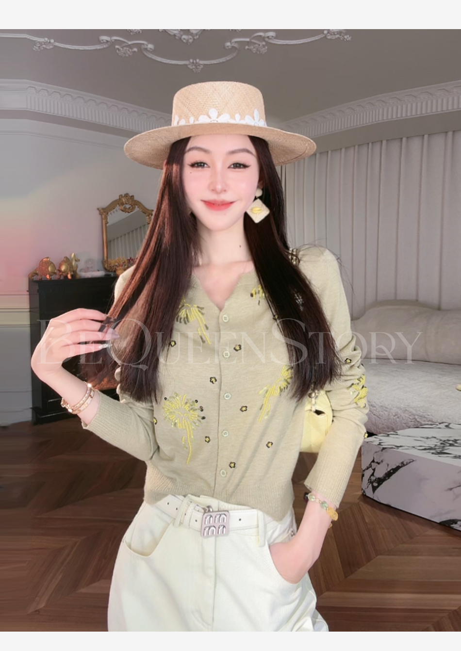 余潇潇【梦露奇想】2025春装新款珠片刺绣绵羊毛混纺圆领修身针织衫