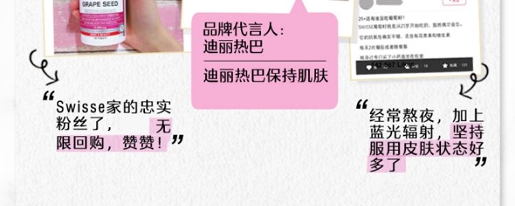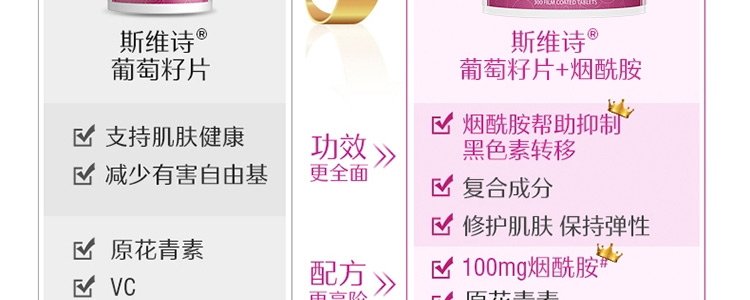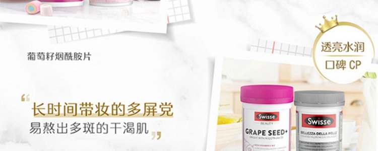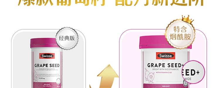 【保税】澳洲swisse 葡萄籽精华/烟酰胺葡萄籽精华 180粒/300粒女性美容养颜保健品葡萄籽粉胶囊片 提亮肤色 焕发光芒