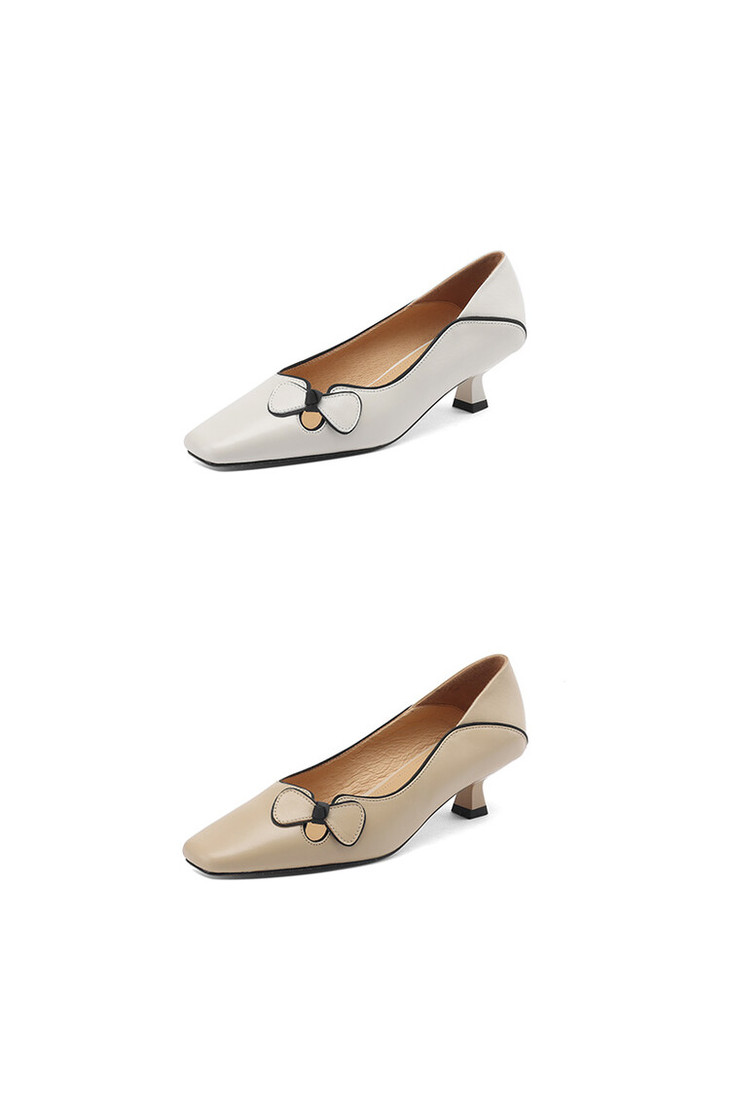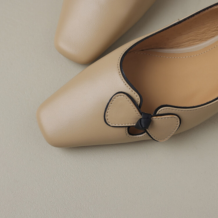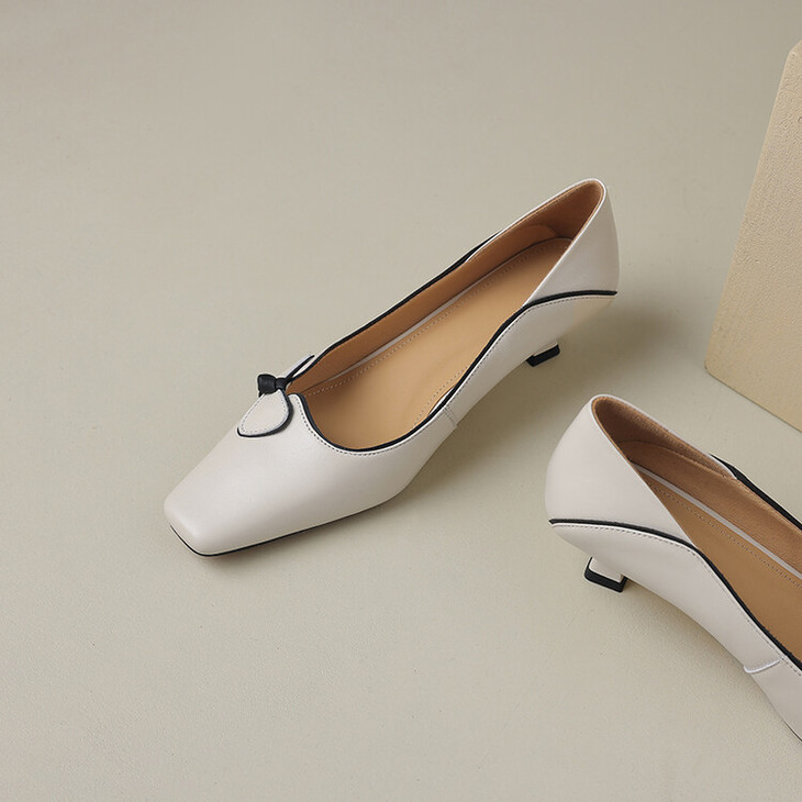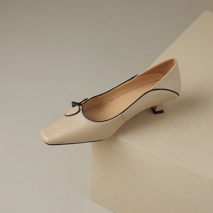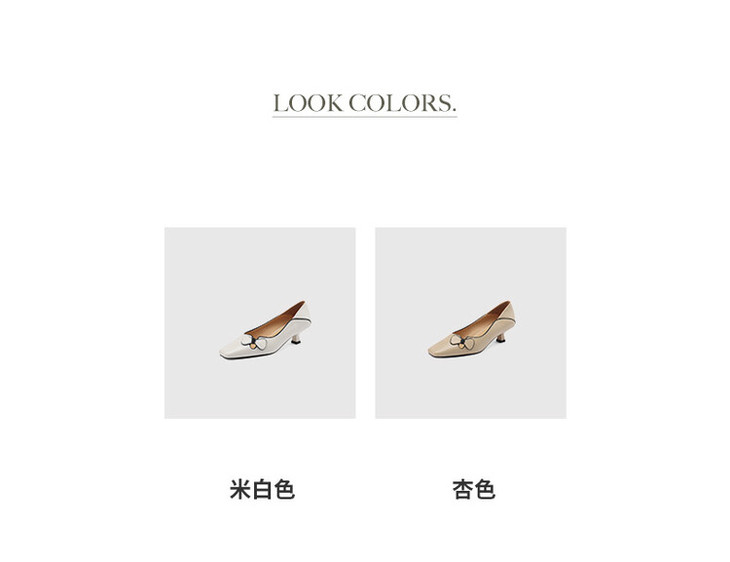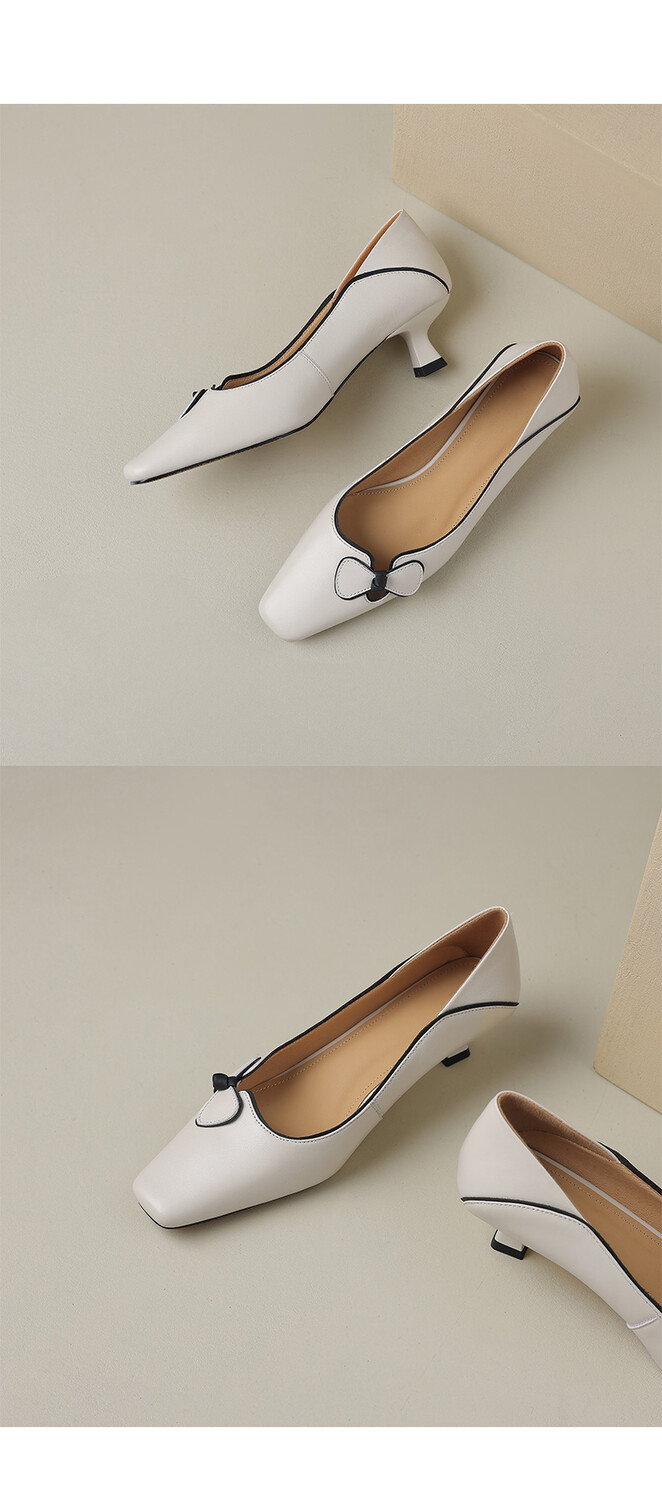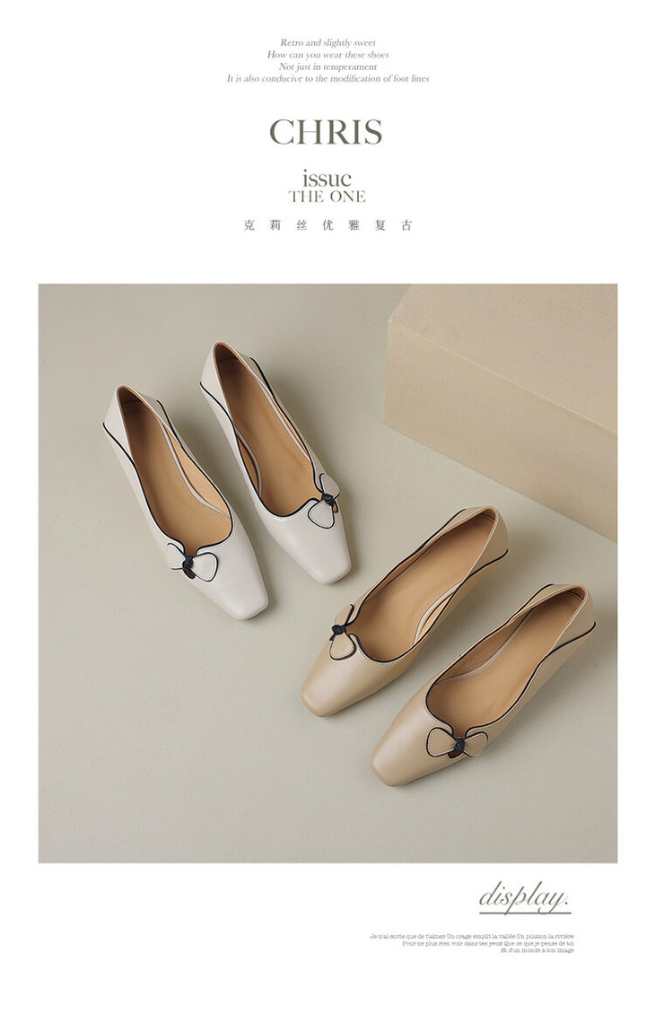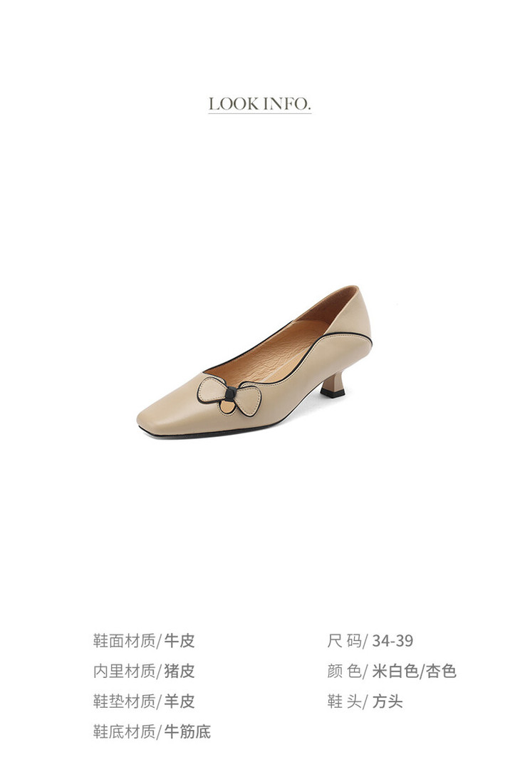 【预售5天】法式简约小方头浅口拼色蝴蝶结细跟软面中跟单鞋WC&M8219