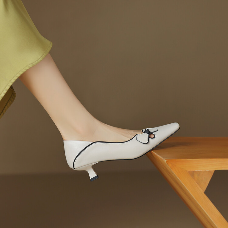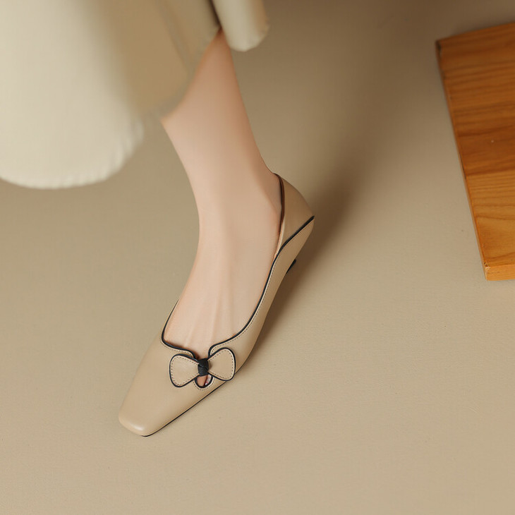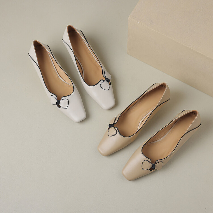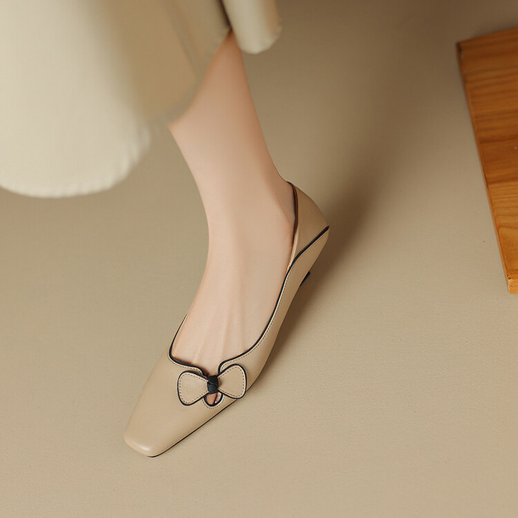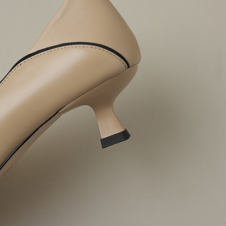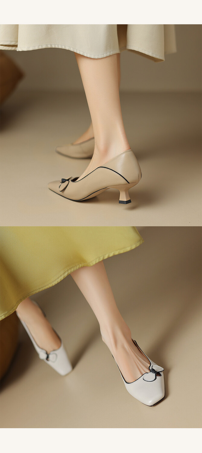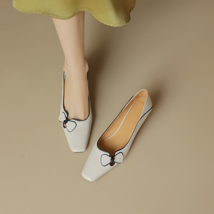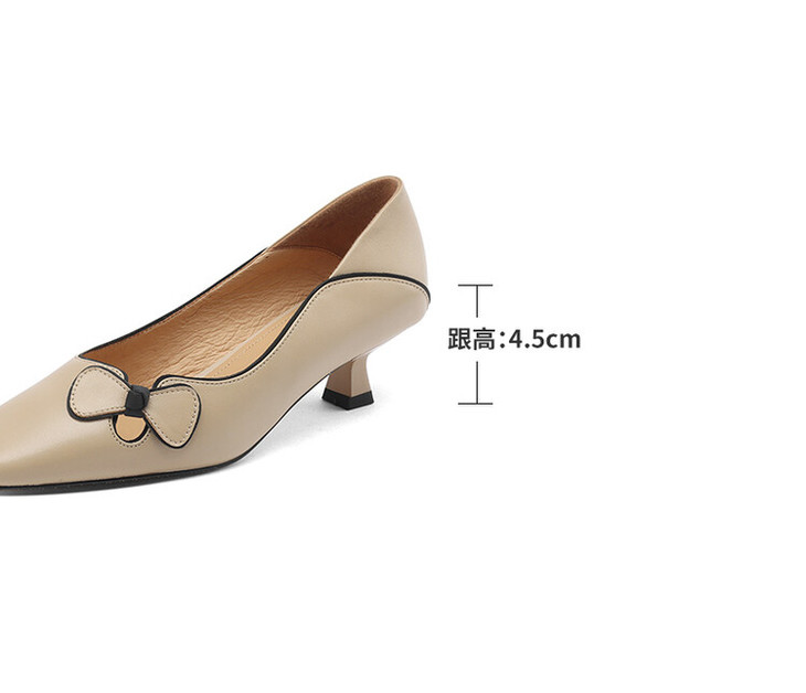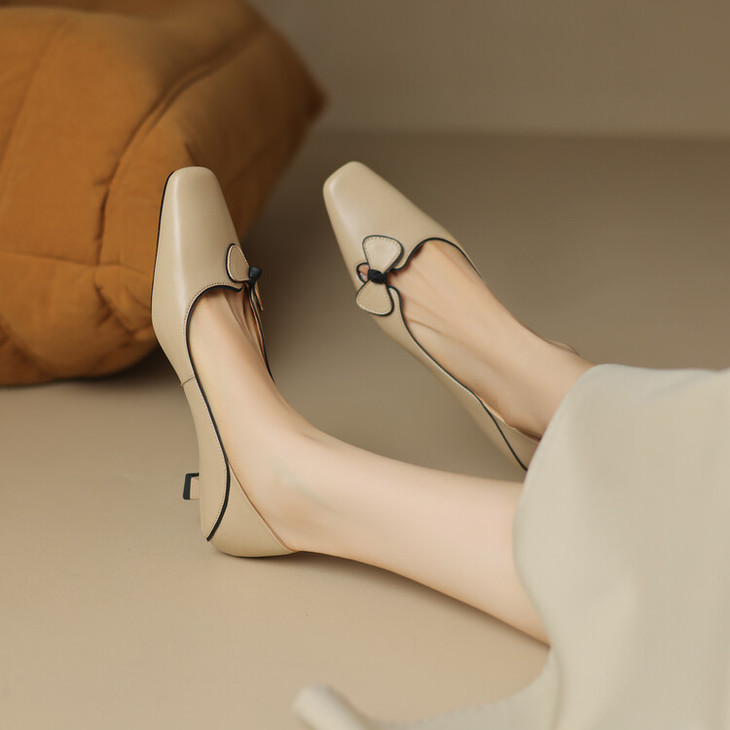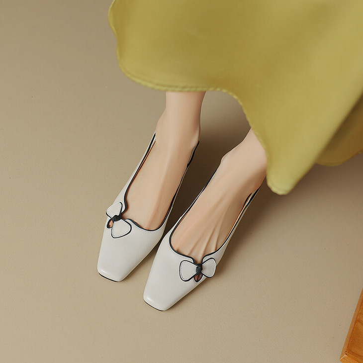 【预售5天】法式简约小方头浅口拼色蝴蝶结细跟软面中跟单鞋WC&M8219