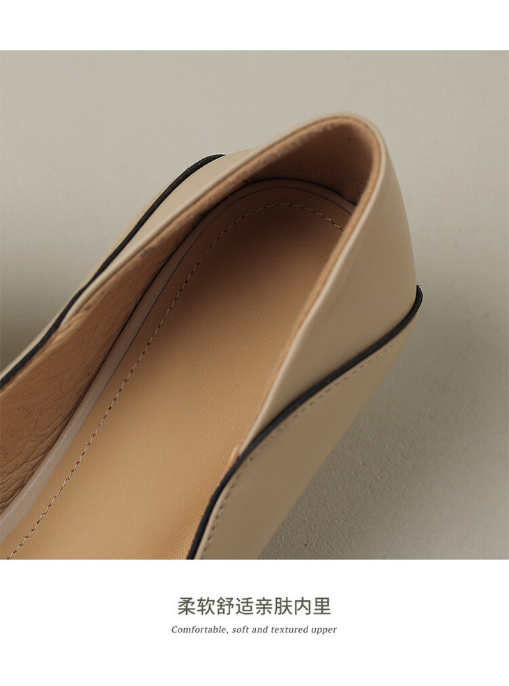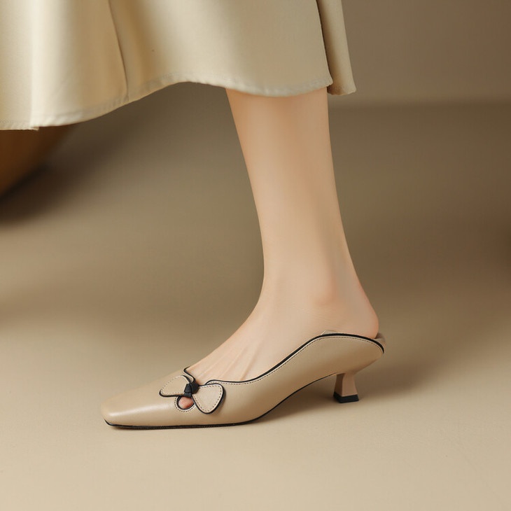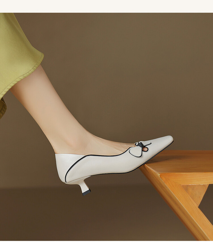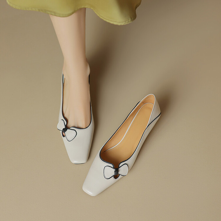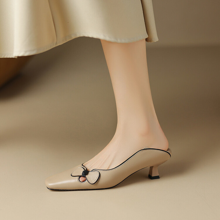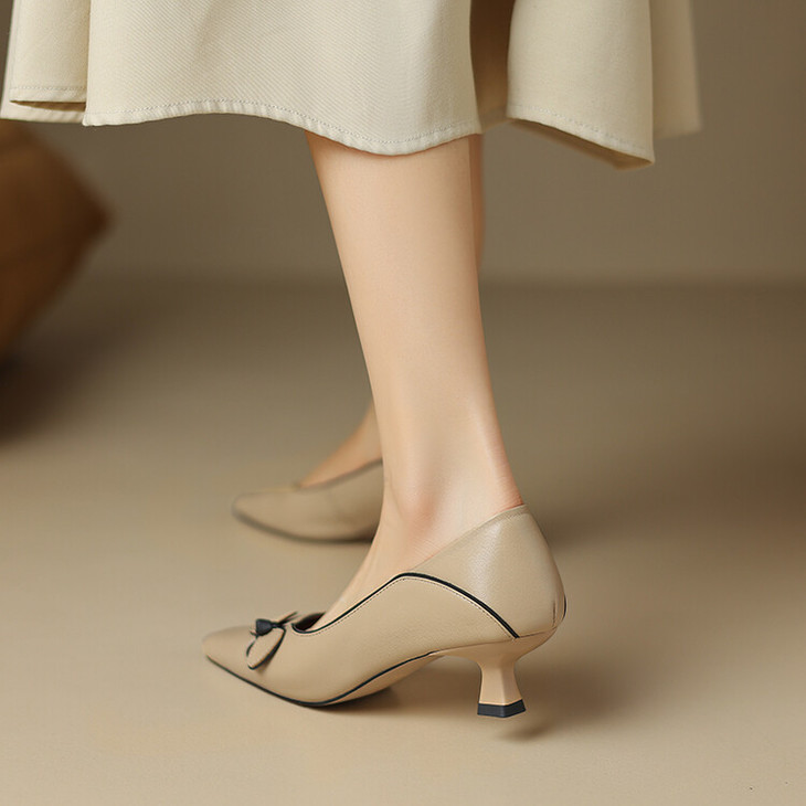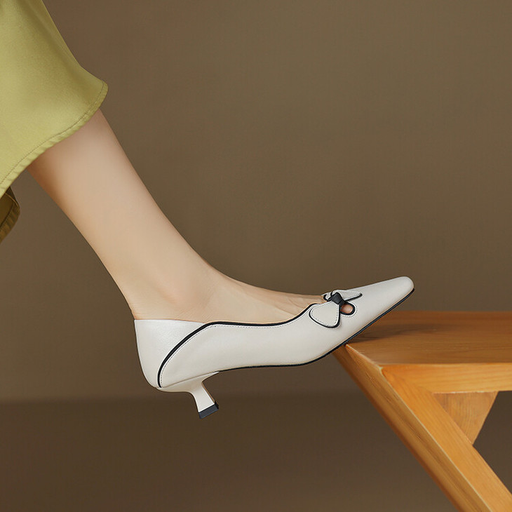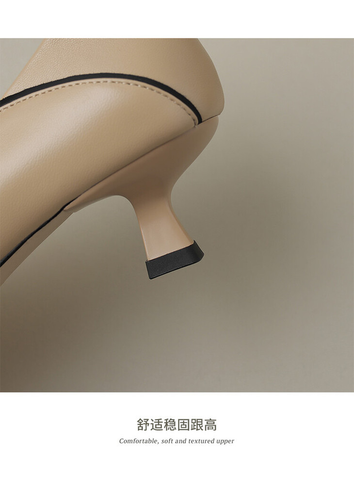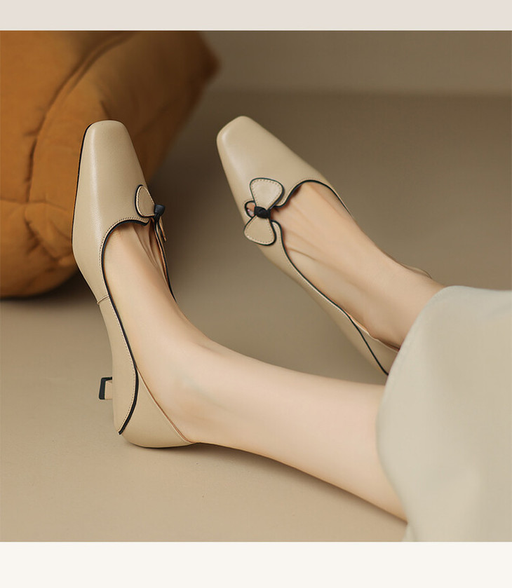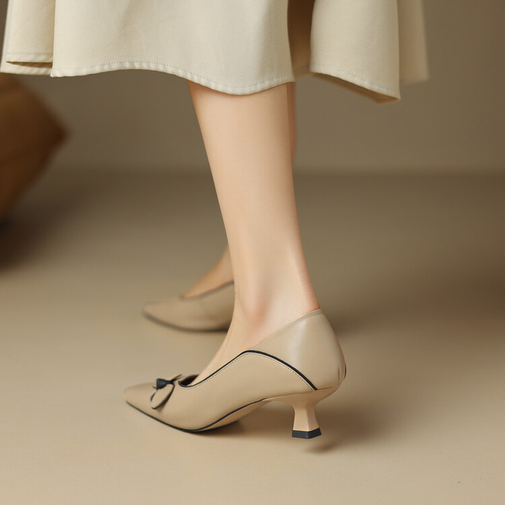 【预售5天】法式简约小方头浅口拼色蝴蝶结细跟软面中跟单鞋WC&M8219