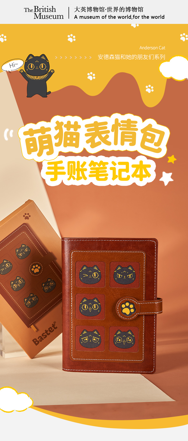 大英博物馆 盖亚·安德森猫和她的朋友们系列 萌猫表情包 手账笔记本