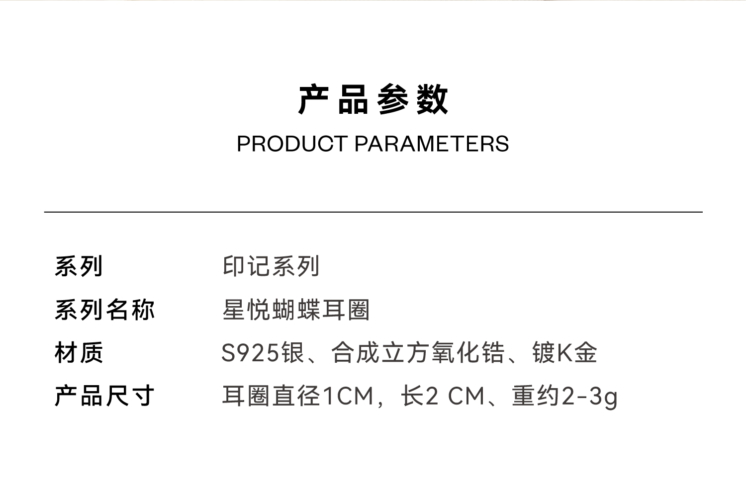 ARSIS银饰|幸运符号系列 星悦蝴蝶耳圈