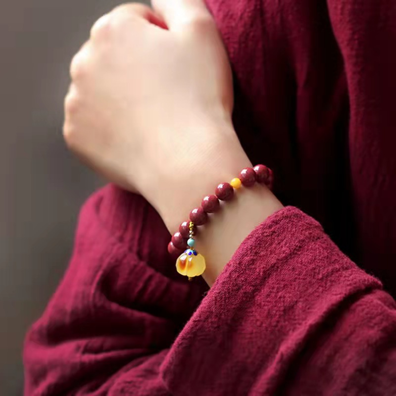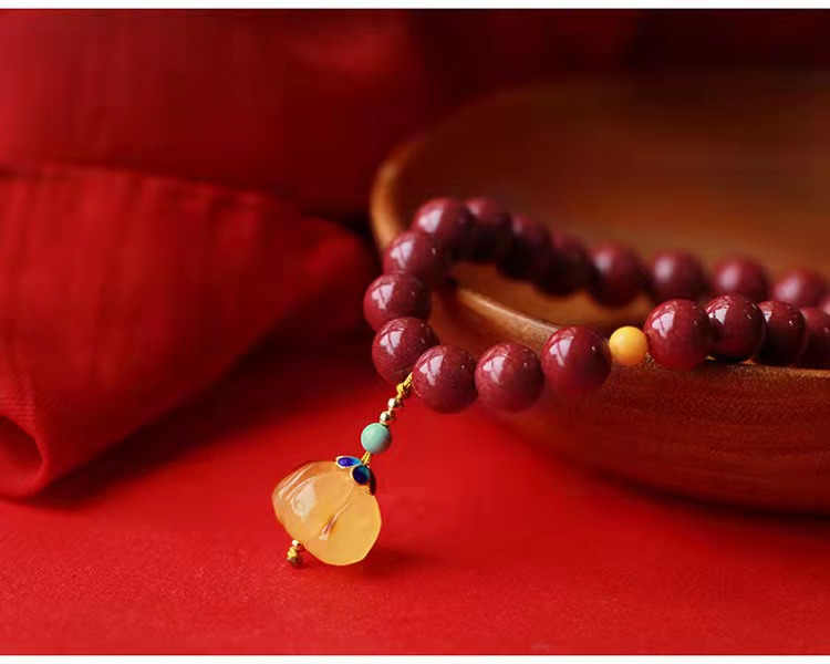 紫金砂蜜蜡手串手链 10mm 朱砂手串红色红手链 首饰饰品礼物