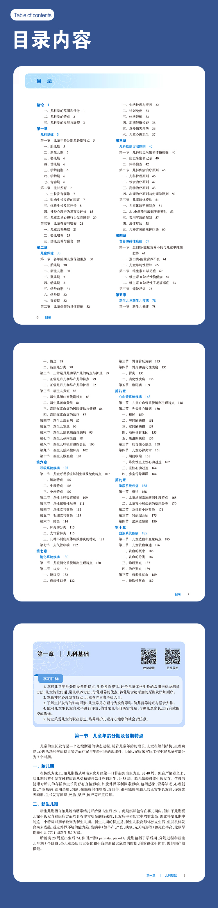 本教材为国家卫生健康委员会“十四五”高等职业教育专科临床医学专业规划教材之一。本版教材的适用对象为三年制普通专科医学生,是专科层次临床医学专业重要的专业课教材,是医学生必修的课程教材,是医学生将来从事儿科医疗及儿童健康促进工作的知识和技能基础。本次修订秉承了第8版的编写体例,保留了章首的“学习目标”、正文中的“案例导入”“知识拓展”和章末的“小结”“病例讨论”“思考题”,结合相关知识点插入Box“学·思·悟”以突出思政元素的融入。本教材共分16章,涵盖绪论、儿科基础、儿童保健、儿科疾病诊治原则、营养障碍性疾病、新生儿与新生儿疾病、常见感染性疾病、儿科急重症及各重要系统的常见病、多发病等知识。