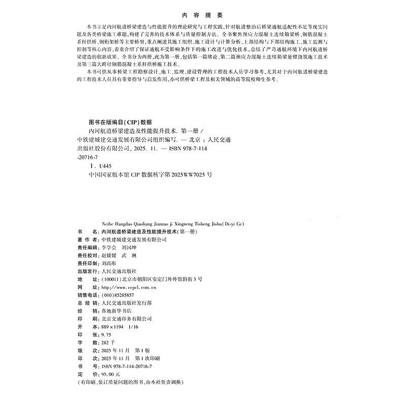 书名:内河航道桥梁建造及性能提升技术(第一册)