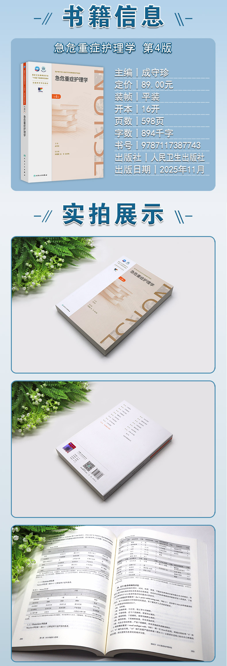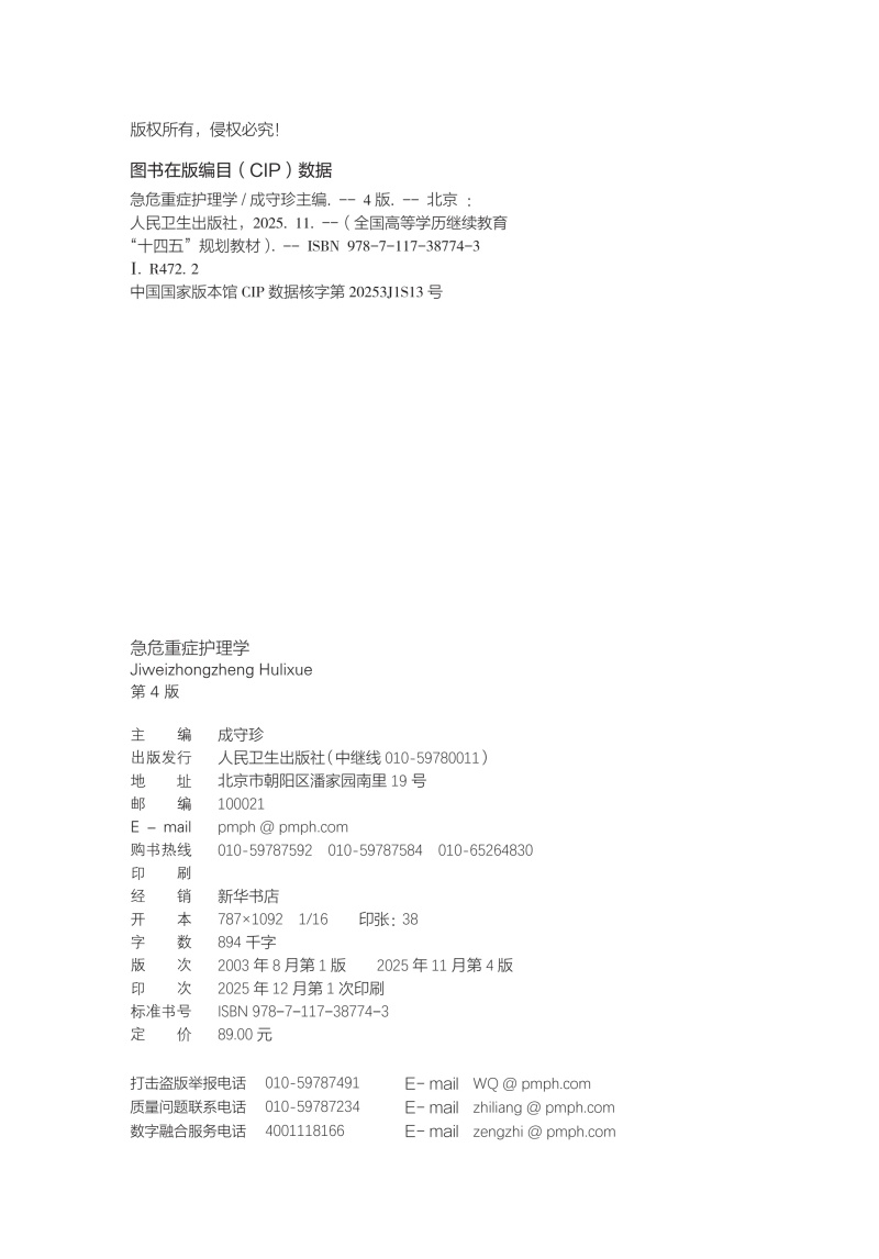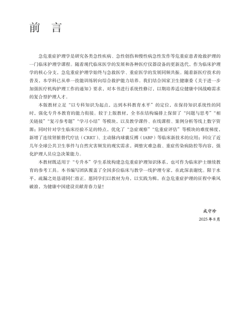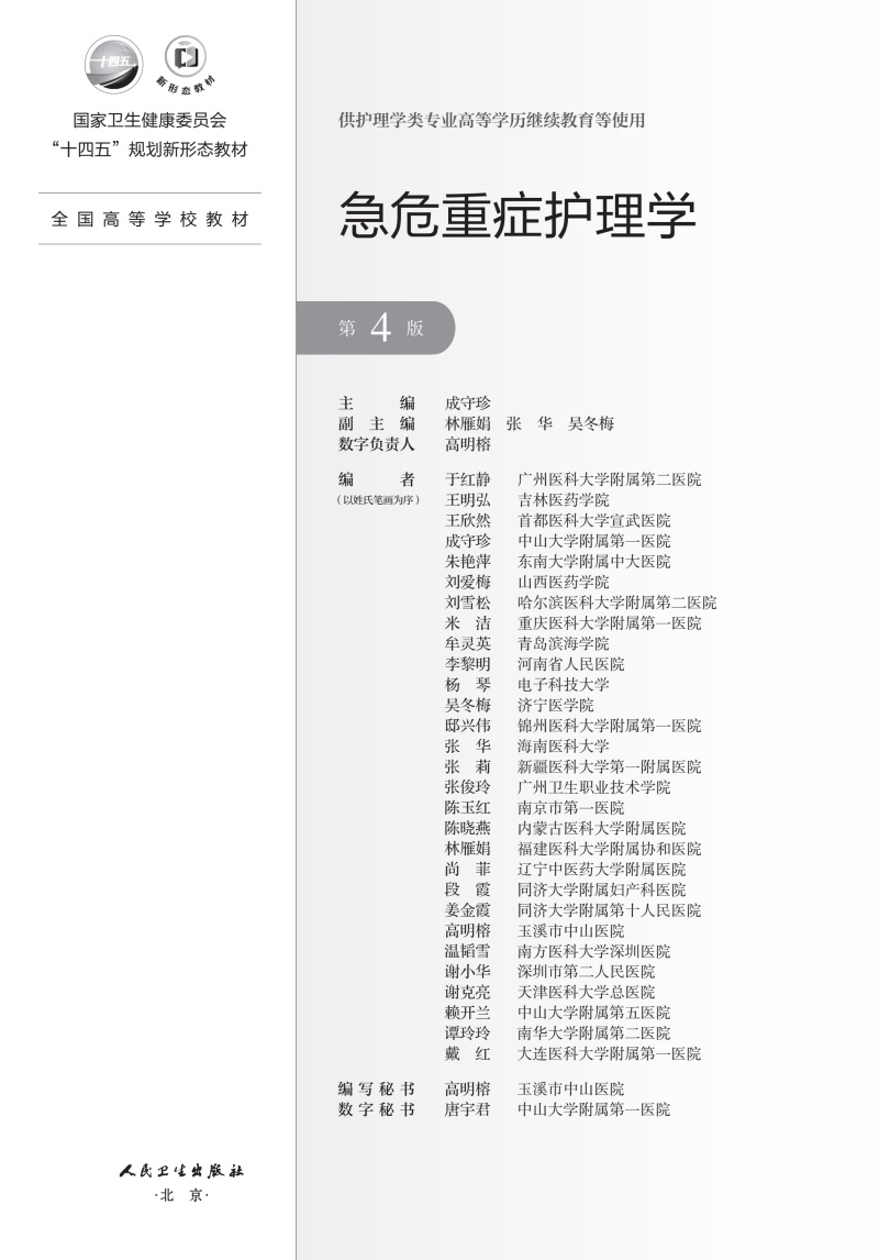 急危重症护理学 第4四版 十四五规划新形态教材 全国高等学校教材 成守珍 供护理学类专业高等学历继续教育等使用 人民卫生出版社