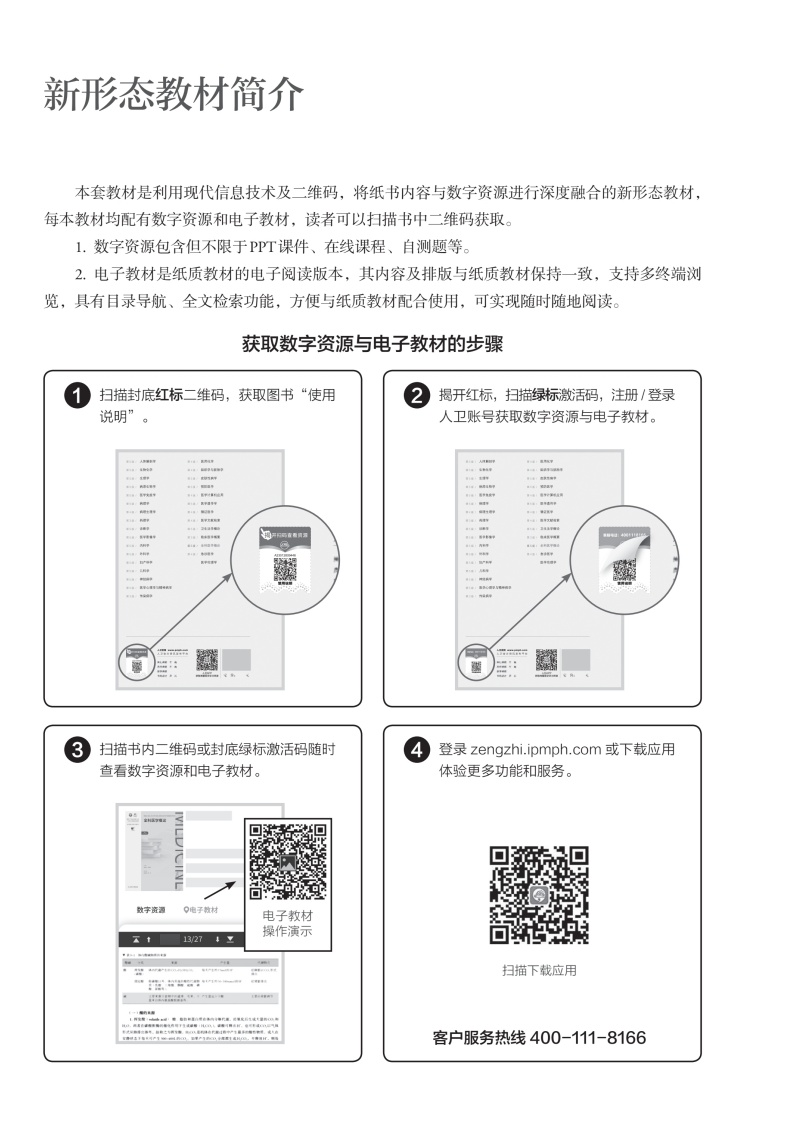 1.第四轮修订概况 自2018年全国高等学历继续教育(专科起点升本科、专科)临床医学、护理学专业第四轮规划教材出版以来,为整体提升我国医疗教育水平和人才培养质量做出了重要贡献。在首届全国教材建设奖的评选中,有12种获得职业教育与继续教育类教材建设奖(1种荣获特等奖),从众多参评教材中脱颖而出,得到了专家的广泛认可。第五轮修订再接再厉,争取再创佳绩。 2.第五轮修订简介 本次修订包含临床医学专业和护理学专业,专科起点升本科层次,共44种。本套教材将继续采用涵盖纸质教材、数字资源以及平台功能融为一体的“融合教材”编写模式,坚持基本理论、基本知识、基本技能和思想性、科学性、先进性、启发性、适应性,同时注重内容安排合理,深浅适宜,适应高等学历继续教育教学的需求。注重遵循医药学高等学历继续教育教学规律,体现医药学高等学历继续教育的特点。在继承和发扬上一版教材基本精神的同时,旨在提高全国高等学历继续教育教材的实用性,使更多的医疗工作人员从中受益。