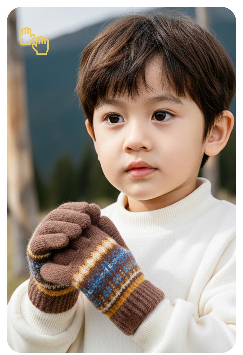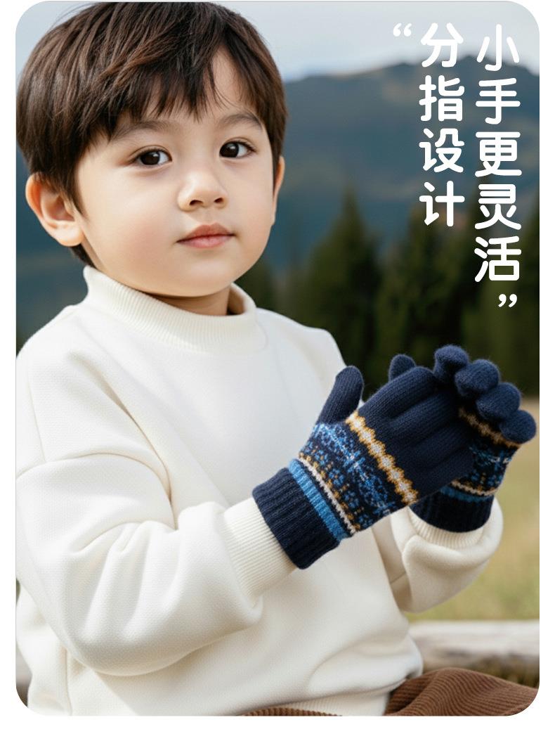 冬季儿童加厚手套双层螺纹收口高弹保暖手套女保暖加厚防水手套男