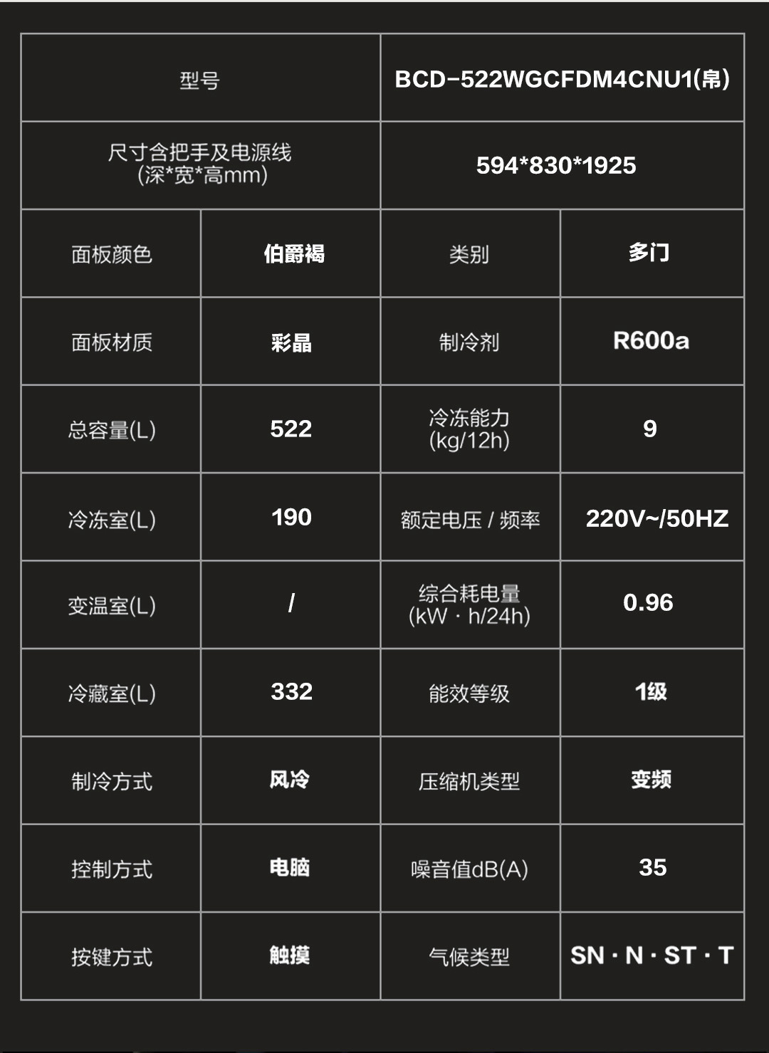 卡萨帝(Casarte)冰箱 BCD-522WGCFDM4CNU1(帛)