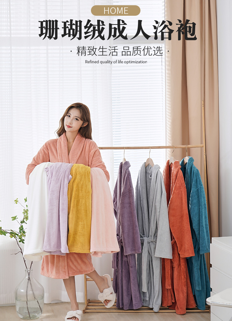 【珊瑚绒成人浴袍!吸水性卓越】加厚吸水男女家用成人款, 柔软温暖 贴心呵护 冬日的浸泡时光 轻松尽享,多种颜色选择,柔软性好 耐磨耐用,大尺寸全包裹 触感舒适